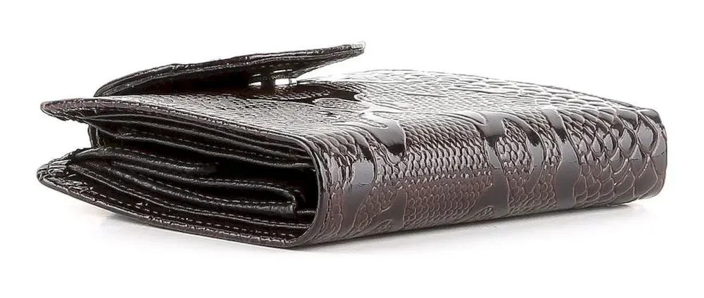 Интересный женский кошелек, из фактурной натуральной кожи под рептилию. Очень аккуратный и компактный аксессуар, который подойдет женщине, которая ценит удобство и качество.