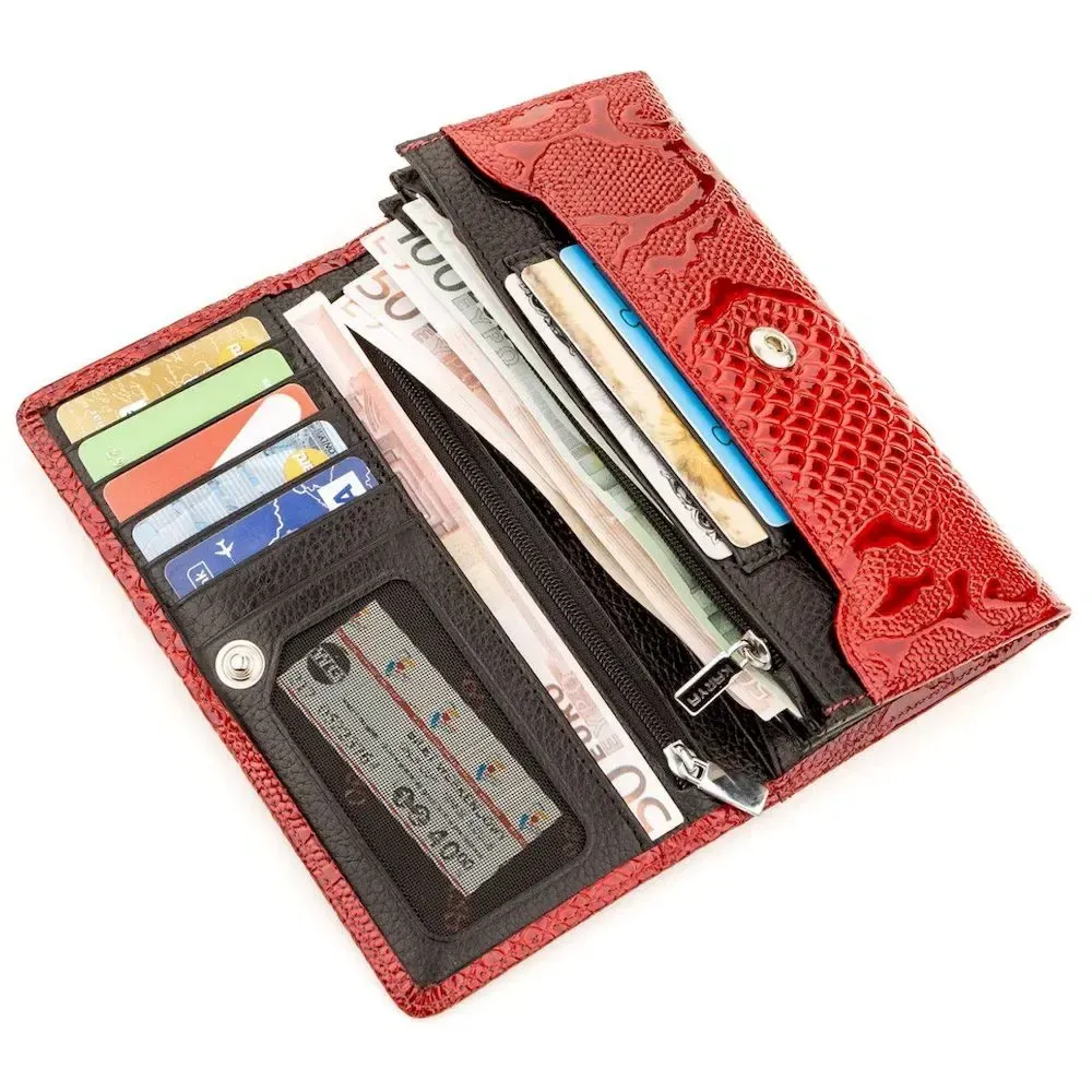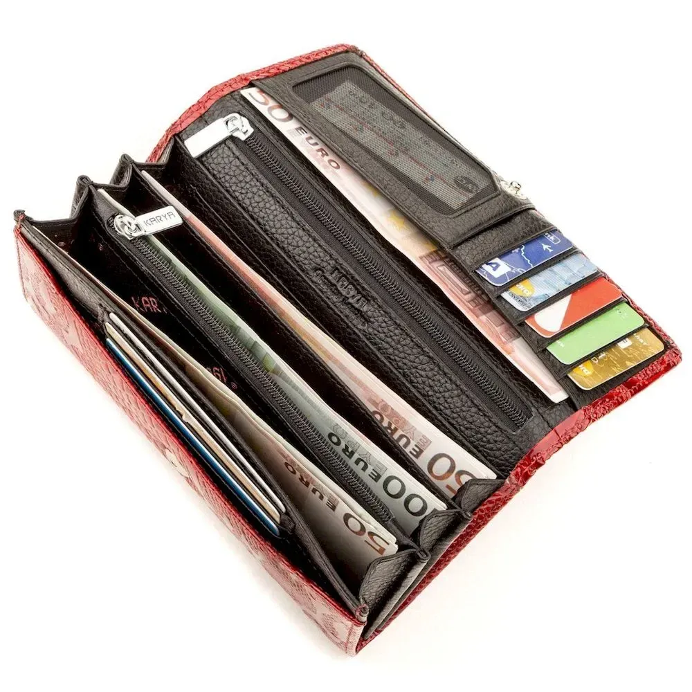 Данная модель отличается индивидуальным стилем и практичностью. Вместительное портмоне будет по душе ярким девушкам. Аксессуар очень красиво смотрится в руках. Выглядит очень богато и оригинально. Отлично подойдет для любителей большого количества кармашков. А также будет превосходным подарком для женщины. В подарок идет фирменная упаковка.
