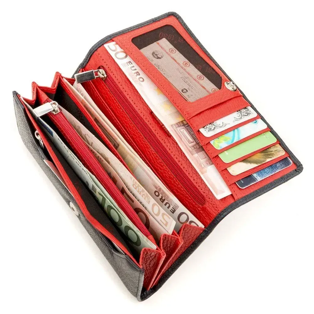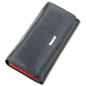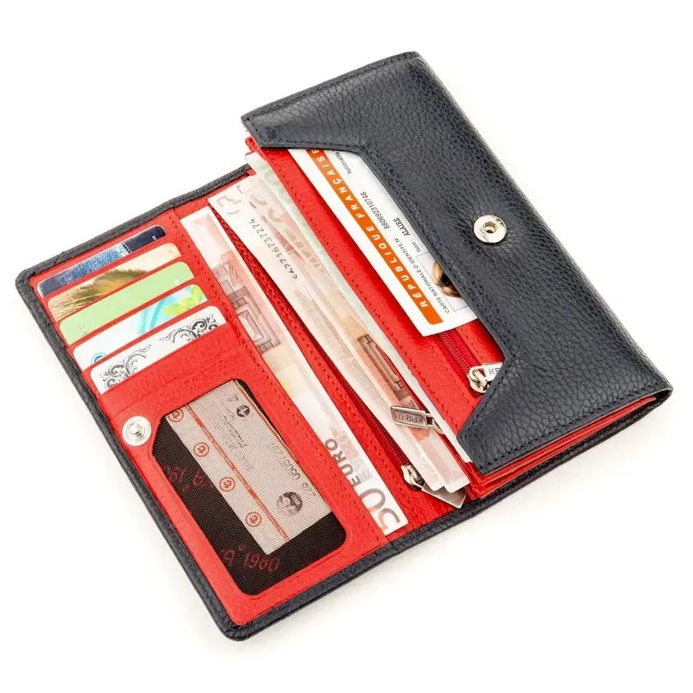 Очень практичная и вместительная модель из натуральной кожи синего цвета. Аксессуар подчеркнет ваш статус. Будет по душе любителям карточек и визиток. Кошелек застегивается на заклепку. Высокое качество материалов способствует увеличению времени носки. Синий цвет очень трендовый на рынке и смотрится довольно оригинально. Может быть отличным подарком и доставит много радости его обладательнице. В комплекте идет фирменная упаковка.