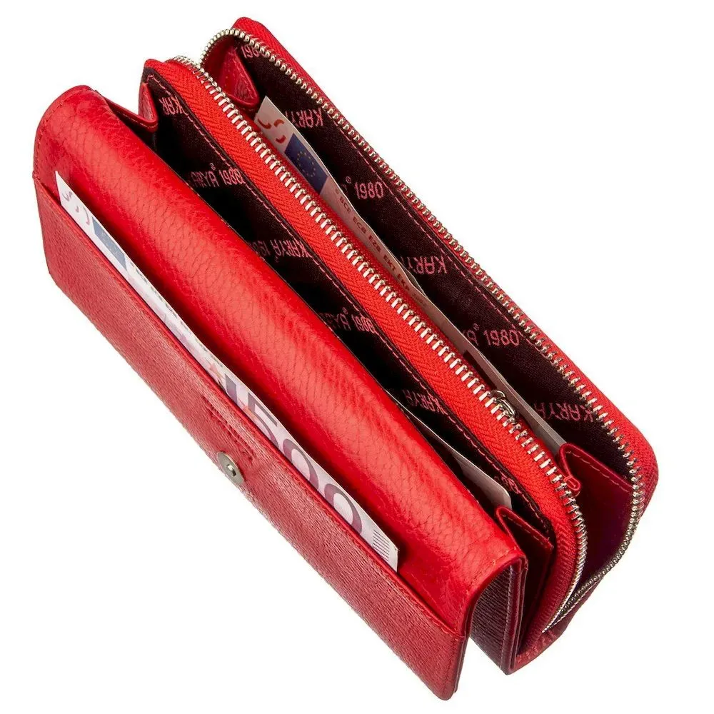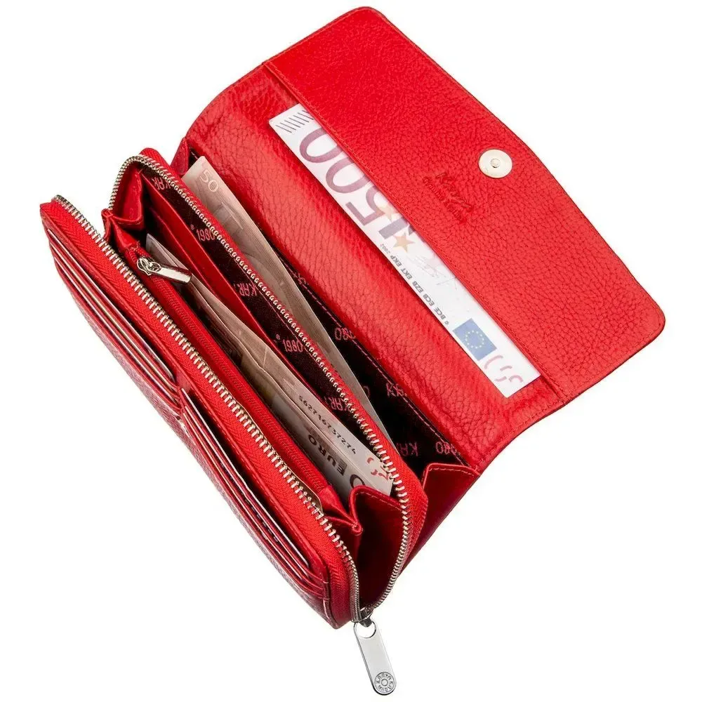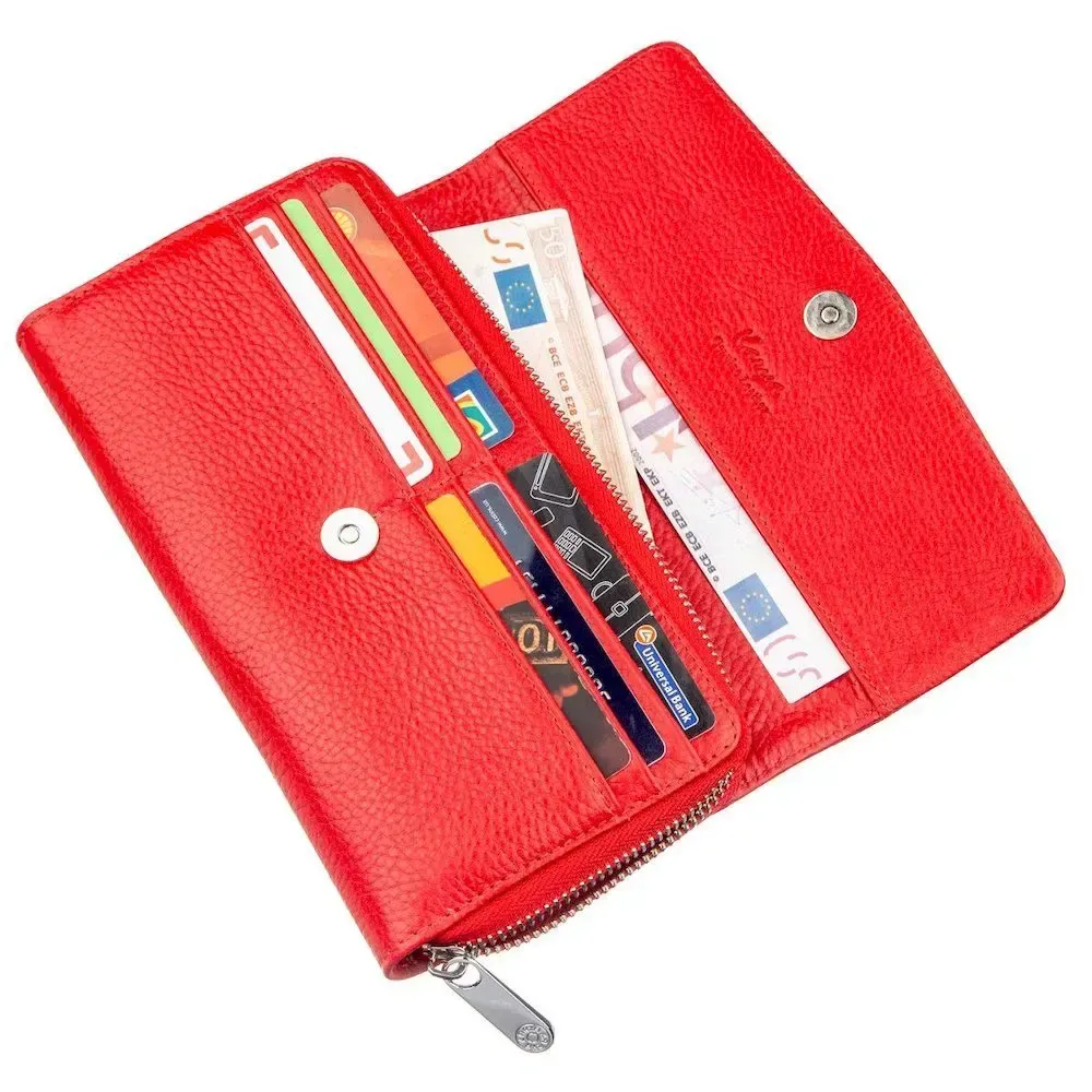 Модель выполнена из кожи турецкого качества. Кошелек будет прекрасной находкой для любой девушки. Красный цвет отлично выделит вас среди серой толпы и украсит ваш образ. Кошелек дополнен разнообразными отделениями, что облегчит поиски необходимых монет, купюр и карточек по сумке. Аксессуар закрывается на клапан с магнитом.