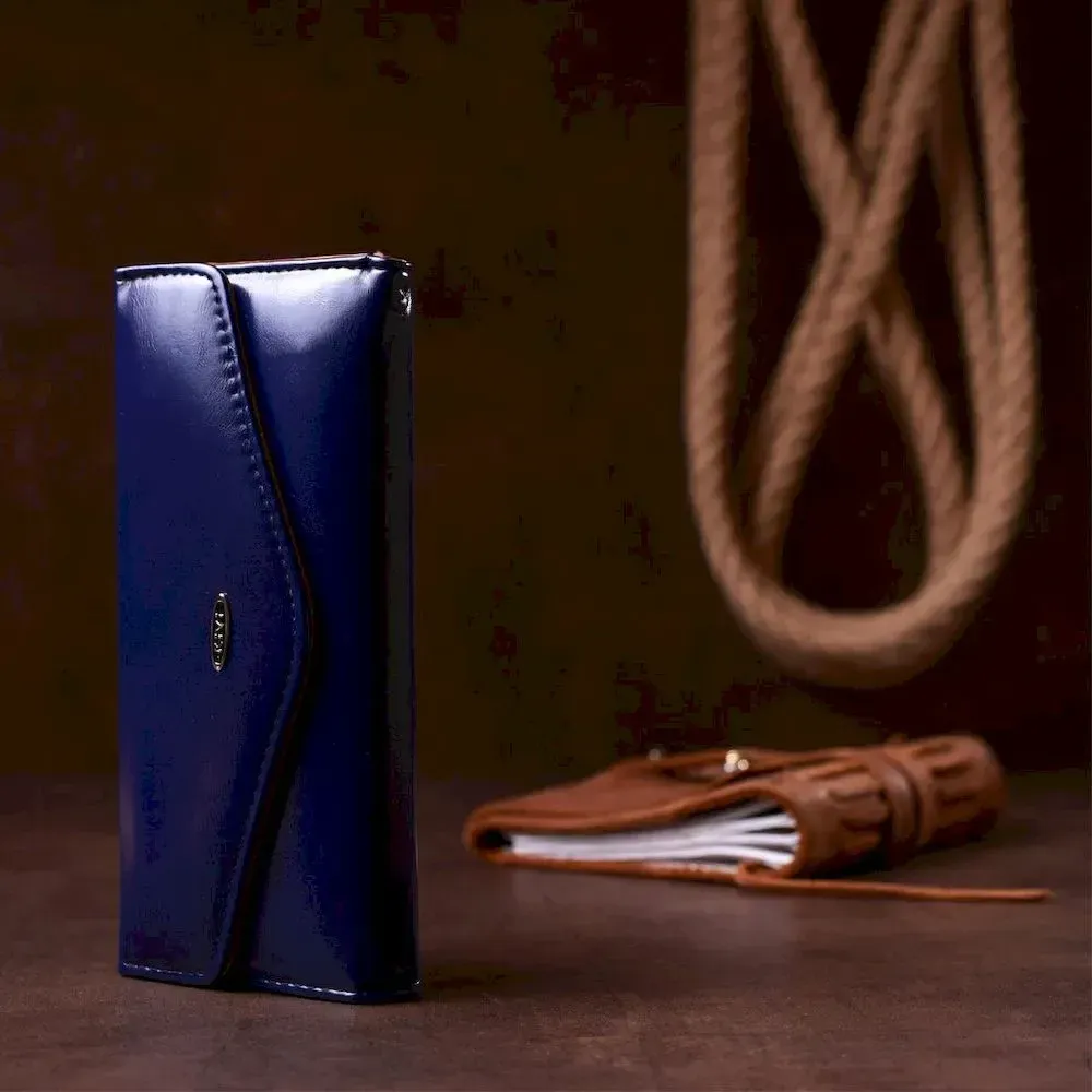 Кошелек женский конверт из гладкой экокожи KIVI 19068 Синий
