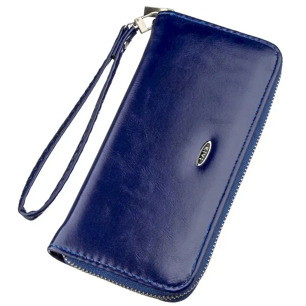 Кошелек женский на одну молнию из экокожи гладкий KIVI 19036 Синий