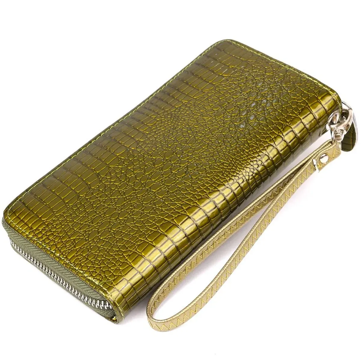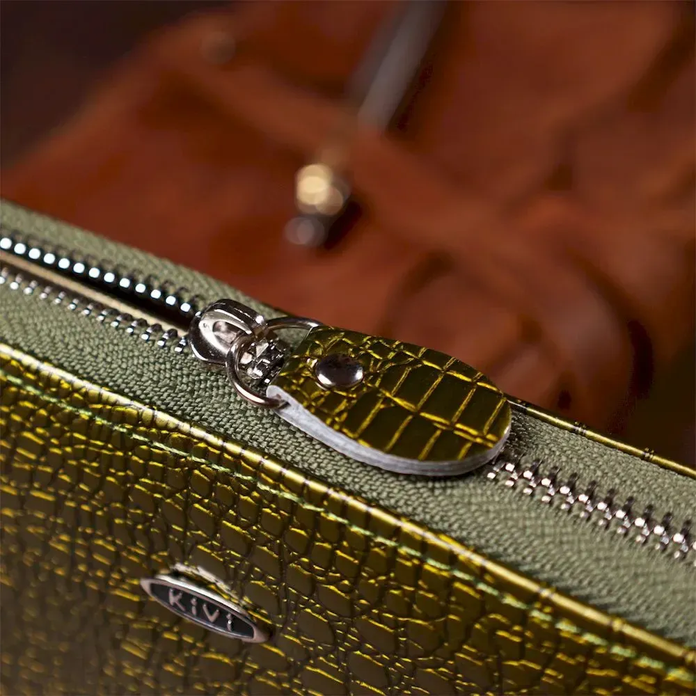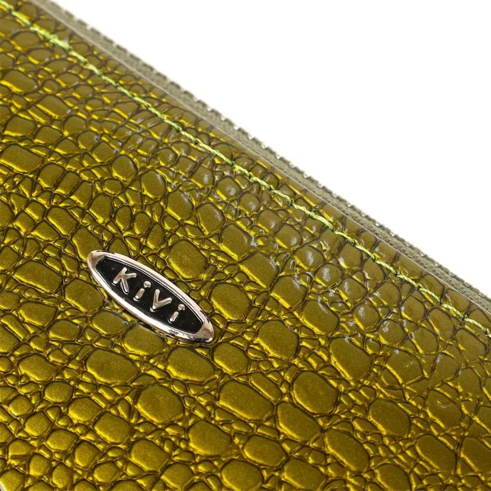 Кошелек женский на одну молнию из экокожи лаковый хамелеон KIVI 19027 Зеленый