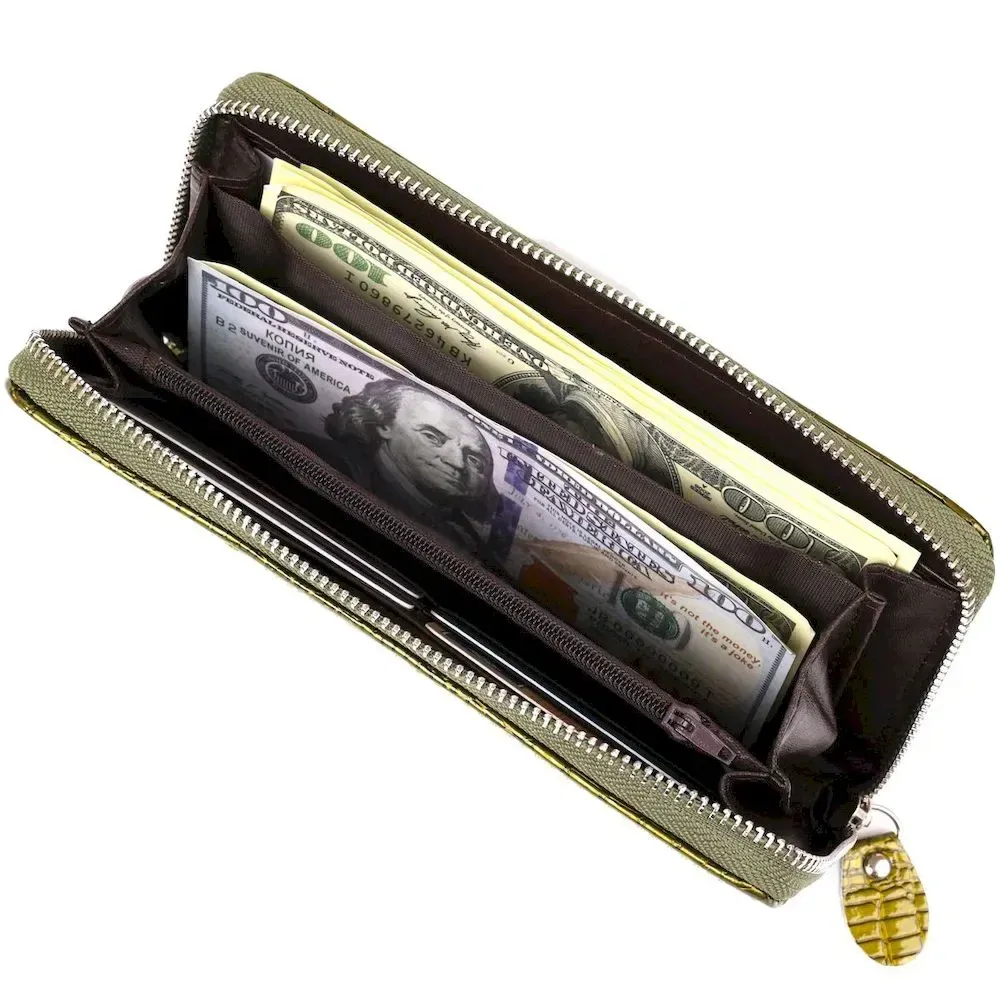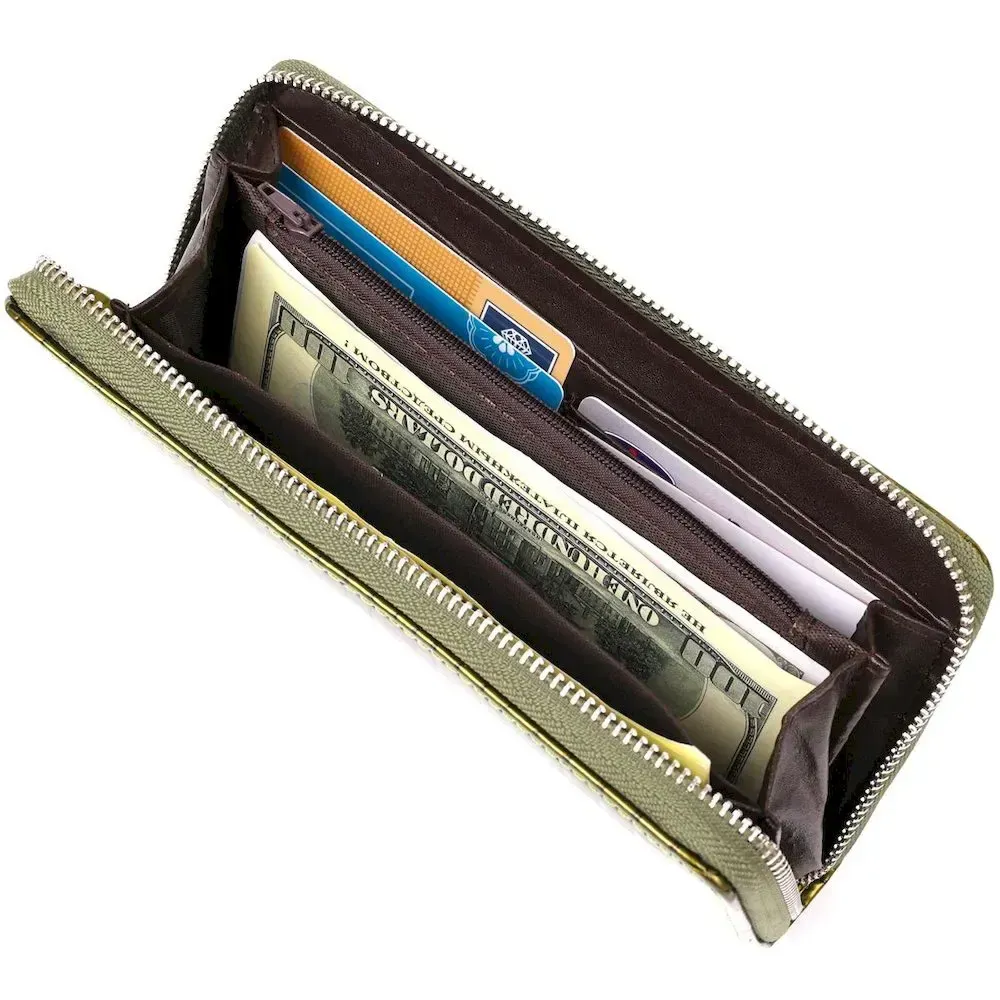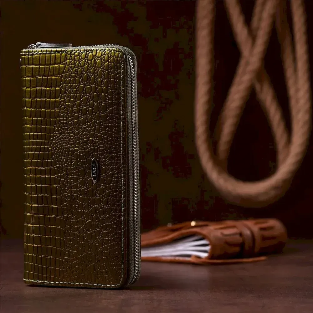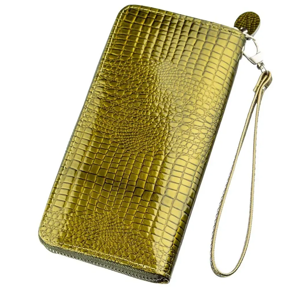 Кошелек женский на одну молнию из экокожи лаковый хамелеон KIVI 19027 Зеленый