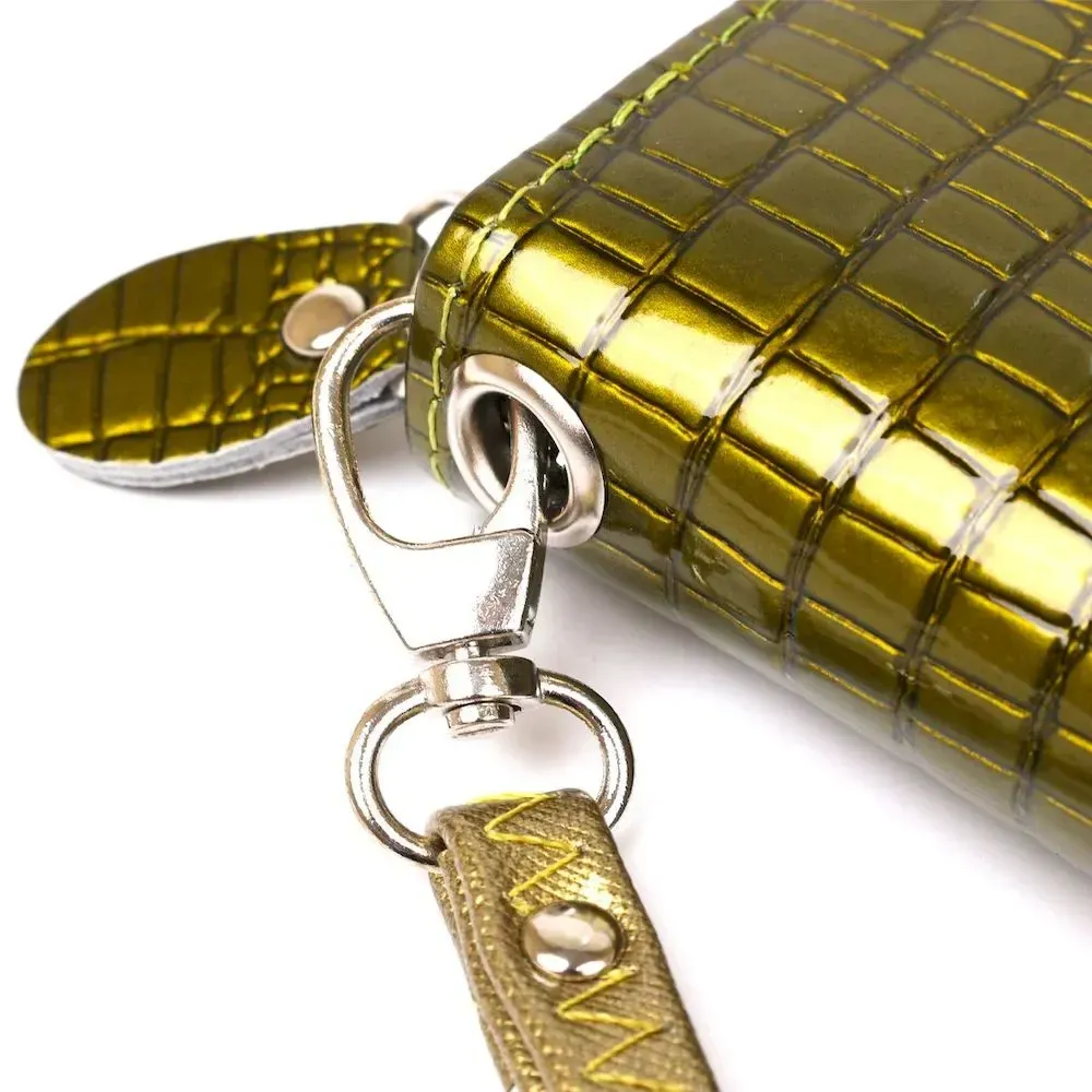 Лаковый кошелек хамелеон зеленого цвета из прочной экокожи принесет радость любой девушке. Модель имеет компактные размеры и легко поместится в дамскую сумочку. На внешней стороне аксессуара металлический логотип бренда. Аксессуар дополнен всем необходимым для каждой девушки: просторные отделения для купюр, слоты для кредиток и отделение на молнии. Также в комплекте к кошельку идет ручка из экокожи на запястье. С помощью такой ручки вы сможете носить ваш кошелек как клатч. Если вы выбираете подарок для близкого человека советуем присмотреться к нашему интернет-магазину. У нас вы найдете большой выбор, высокое качество и доступные цены.