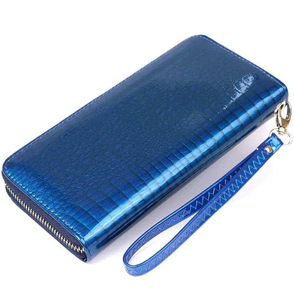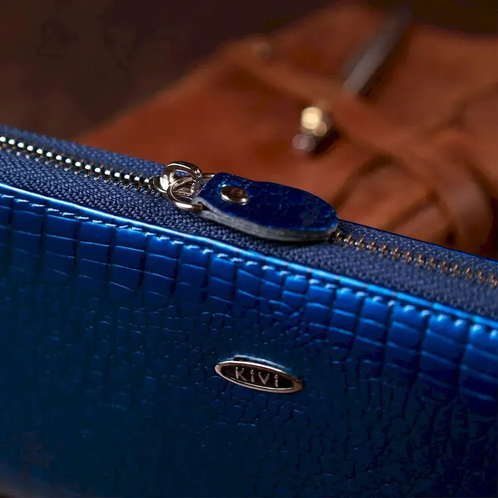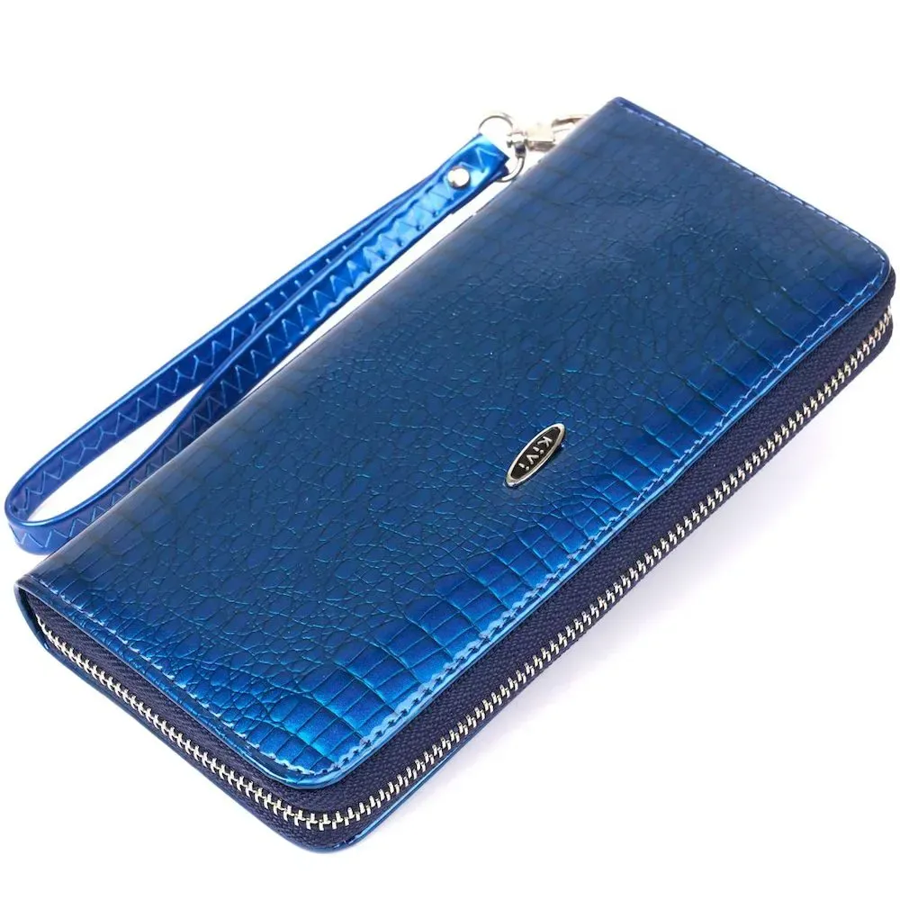 Кошелек женский на одну молнию из экокожи лаковый KIVI 19028 Синий