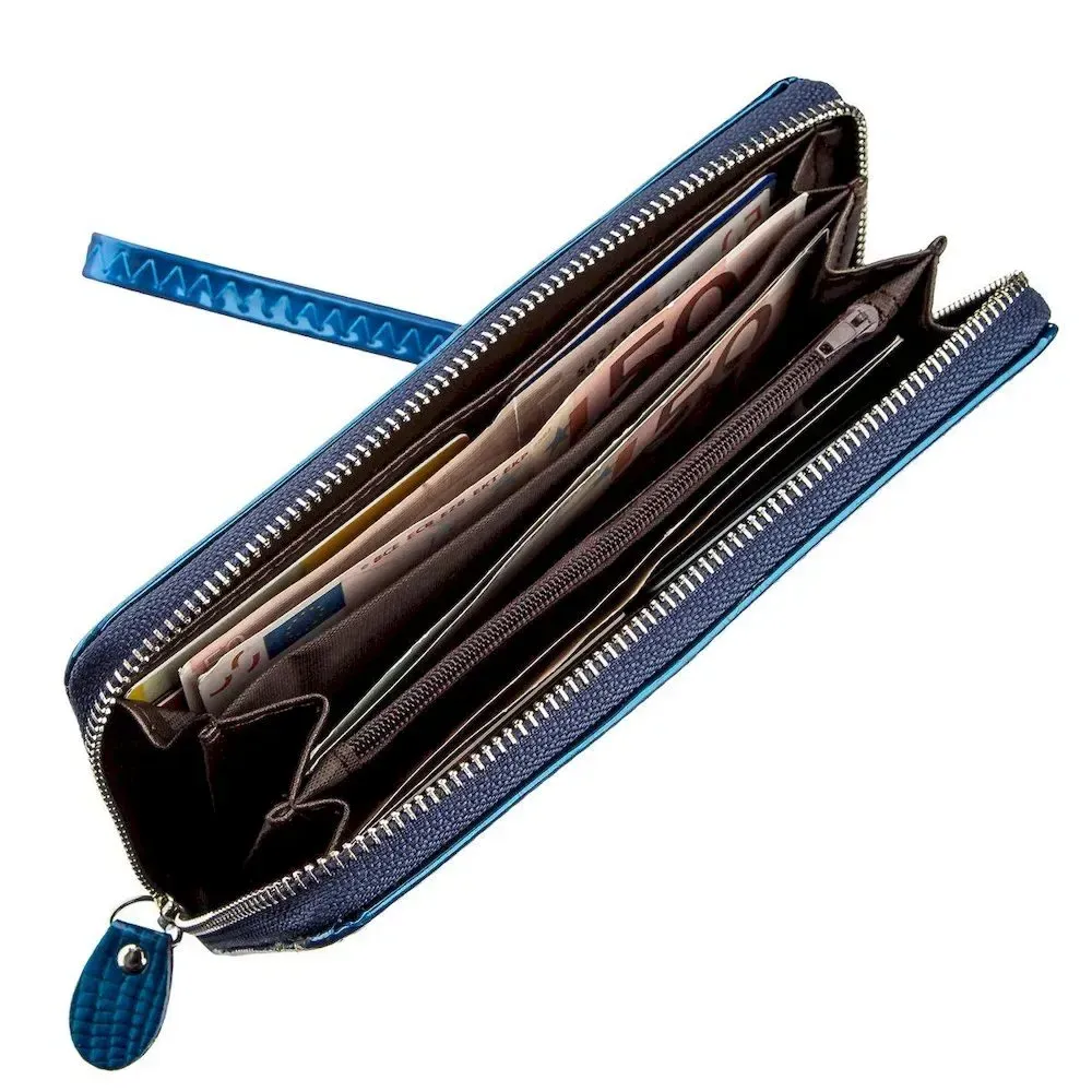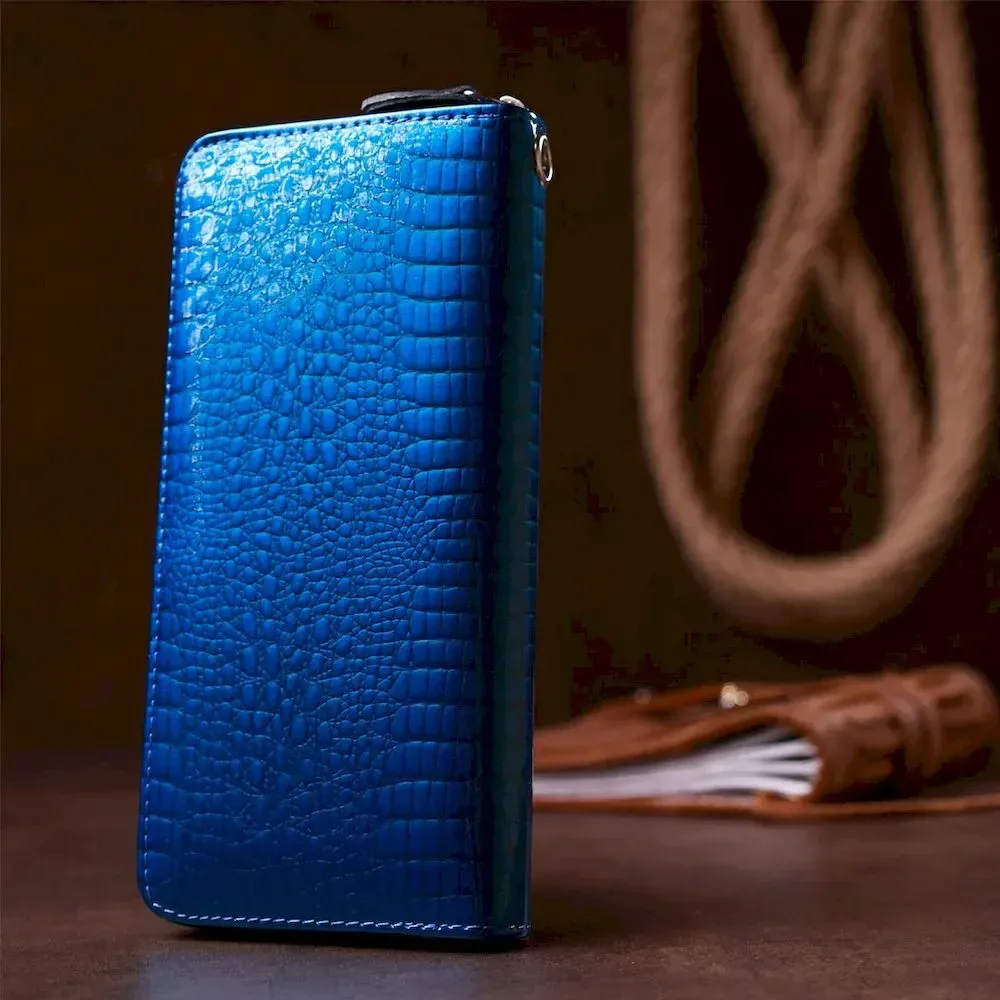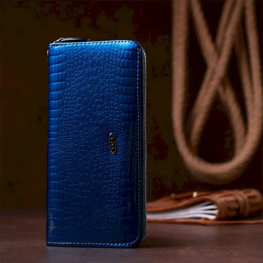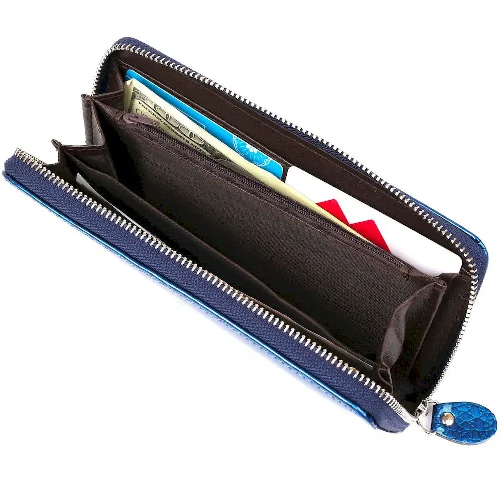 Кошелек женский на одну молнию из экокожи лаковый KIVI 19028 Синий