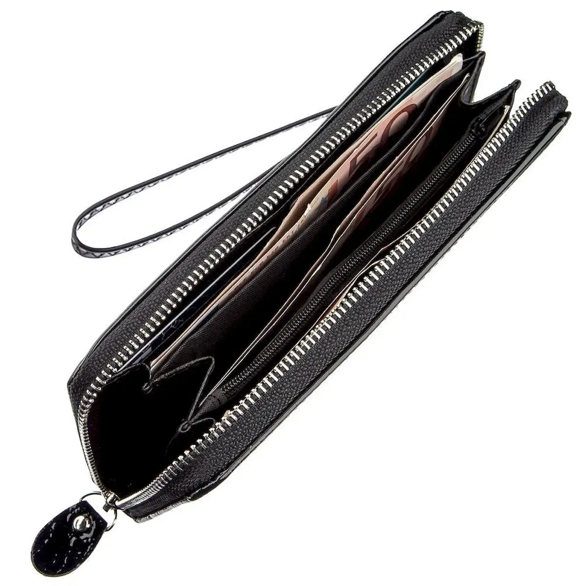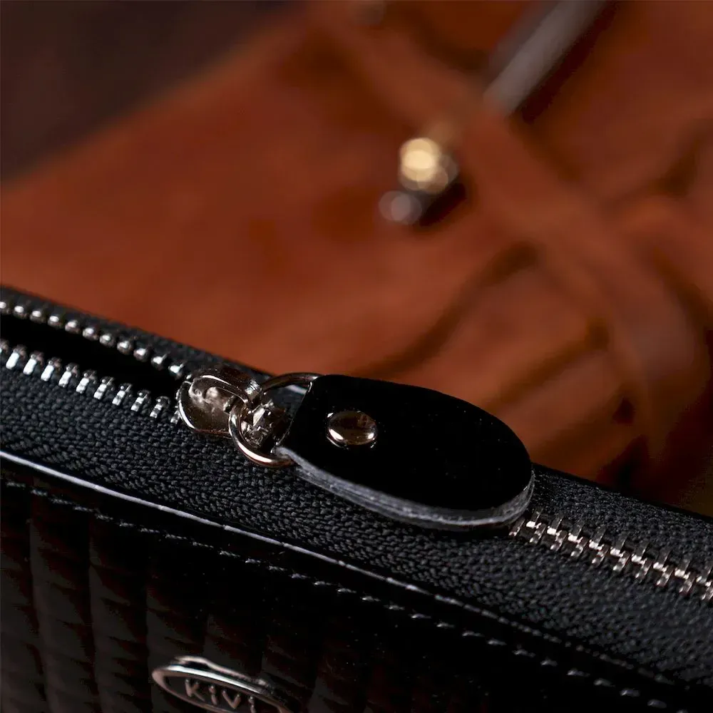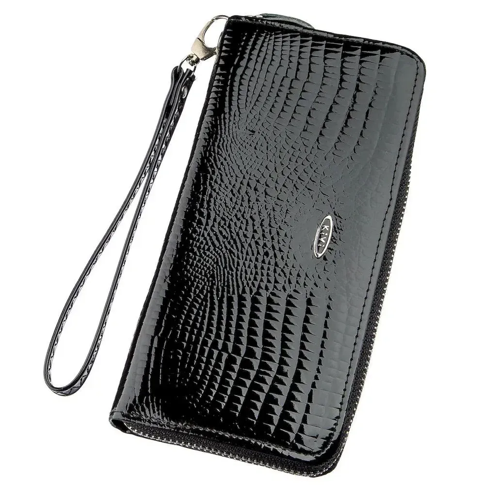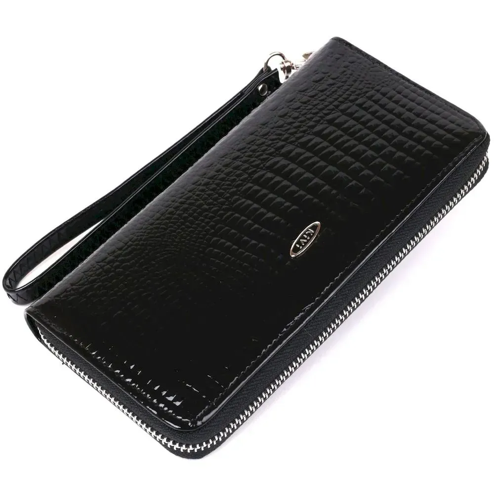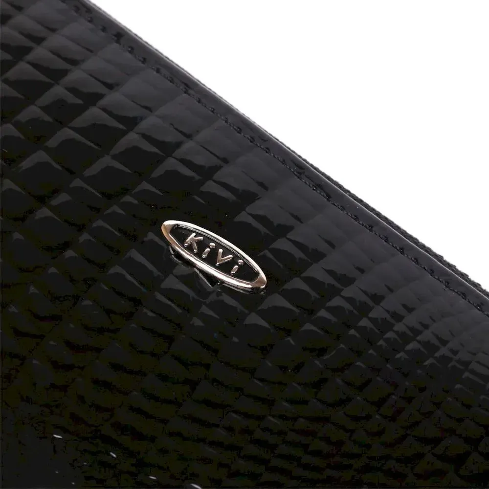 Кошелек женский на одну молнию из экокожи лаковый KIVI 19030 Черный