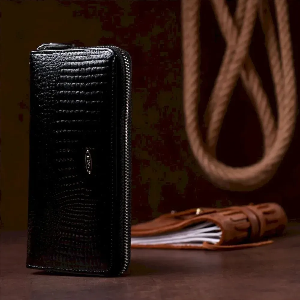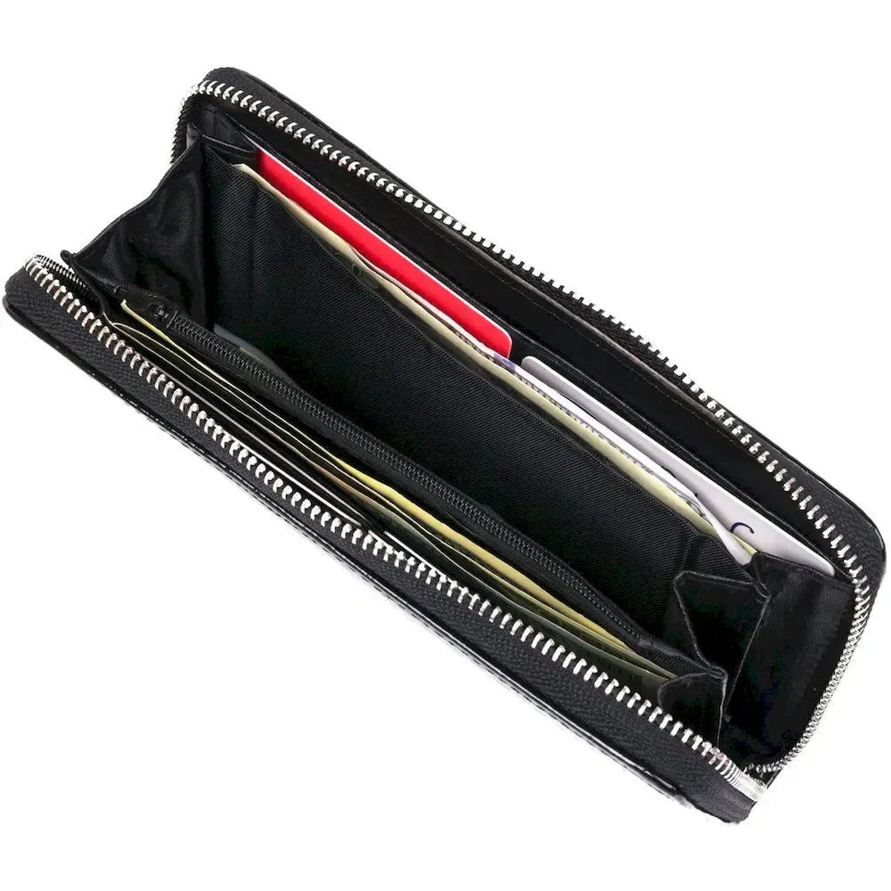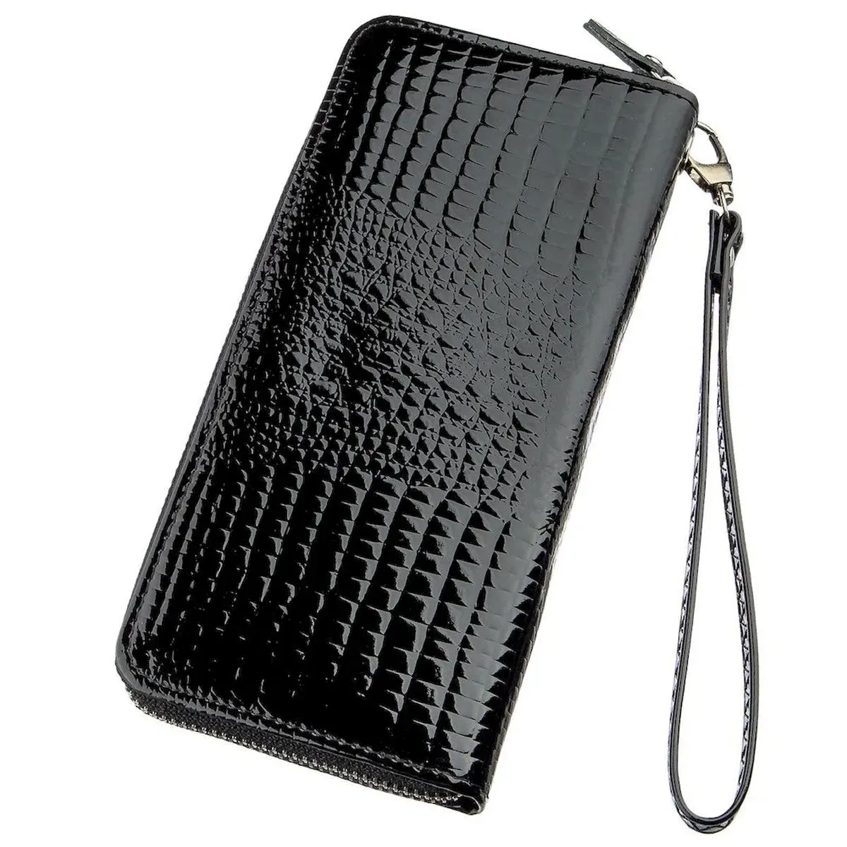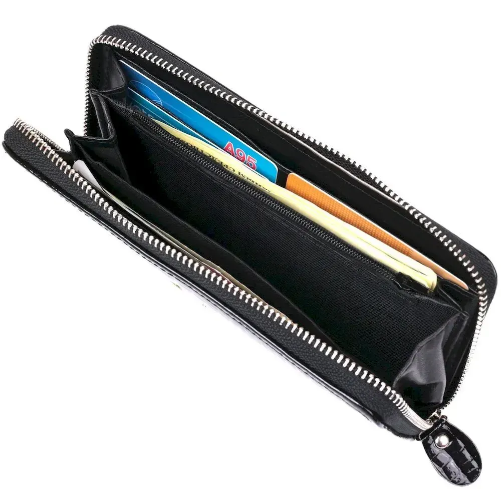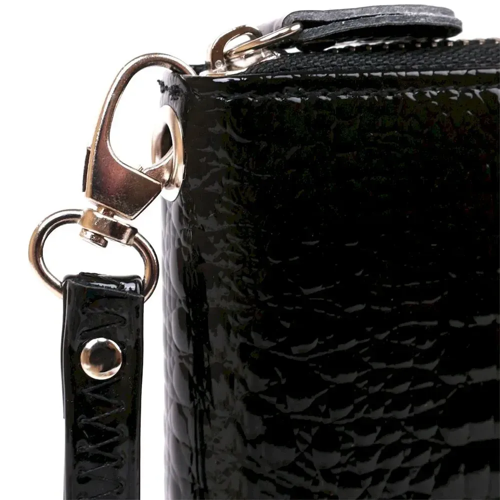 Кошелек женский на одну молнию из экокожи лаковый KIVI 19030 Черный