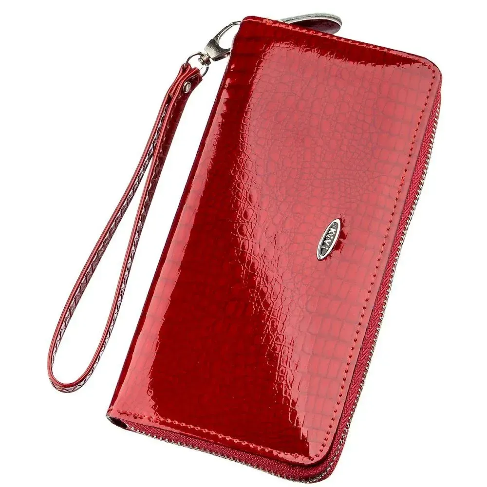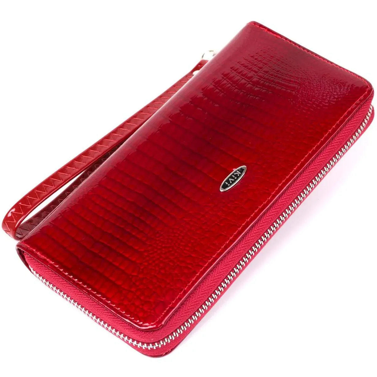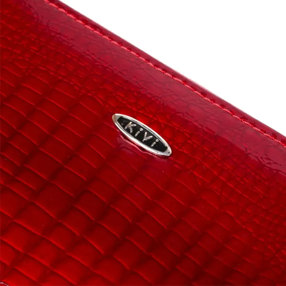 Кошелек женский на одну молнию из экокожи лаковый KIVI 19032 Красный