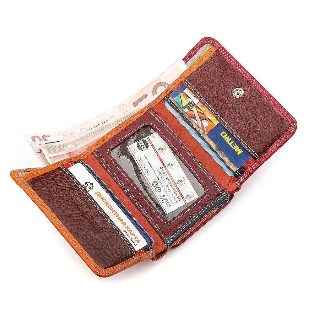 Привлекательность данной модели заключается в смелом сочетании дерзких и смелых оттенков. Современная линейка COLORFUL LINE представляет уникальную модель, объединившую в себе смелые цвета и грамотное наполнение. Данная модель кошелька складывается в три раза и имеет фиксацию на кнопке. На внутреннем развороте открыт доступ к нескольким отделам для бумажных денег и четырем слотам для кредиток. Также кошелек имеет специальное отверстие с окошком для различных документов. В нашем интернет-магазине вы можете выбрать необходимую модель кошелька по доступной для вас стоимости.