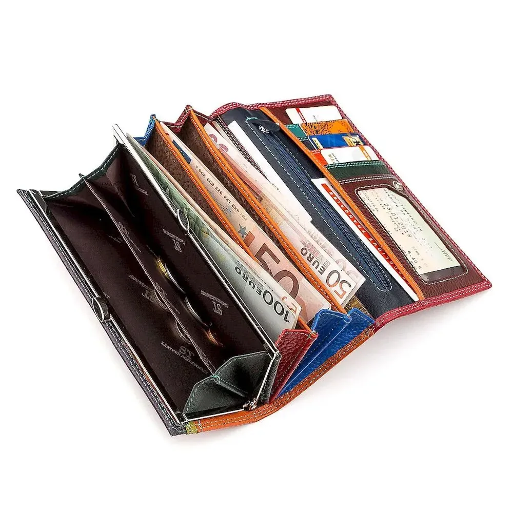 Представленный женский кошелек имеет привлекательный дизайн, отличную надежность и практичность. Внутри расположены отделения для хранения бумажных банкнот, а специальные карманы вмещают аж 14 платежных карточек. Также имеется и прилегающий отсек, и карман для монет, который надежно закрывается. Лицевая часть представлена брендовым фирменным логотипом с элегантной строчкой по нижнему краю. Изготавливается аксессуар из натуральной и экологичной говяжьей и свиной кожи с текстильной подкладкой. Данный кошелек можно приобрести в нашем интернет-магазине, где есть только качественная продукция по приемлемым ценам.