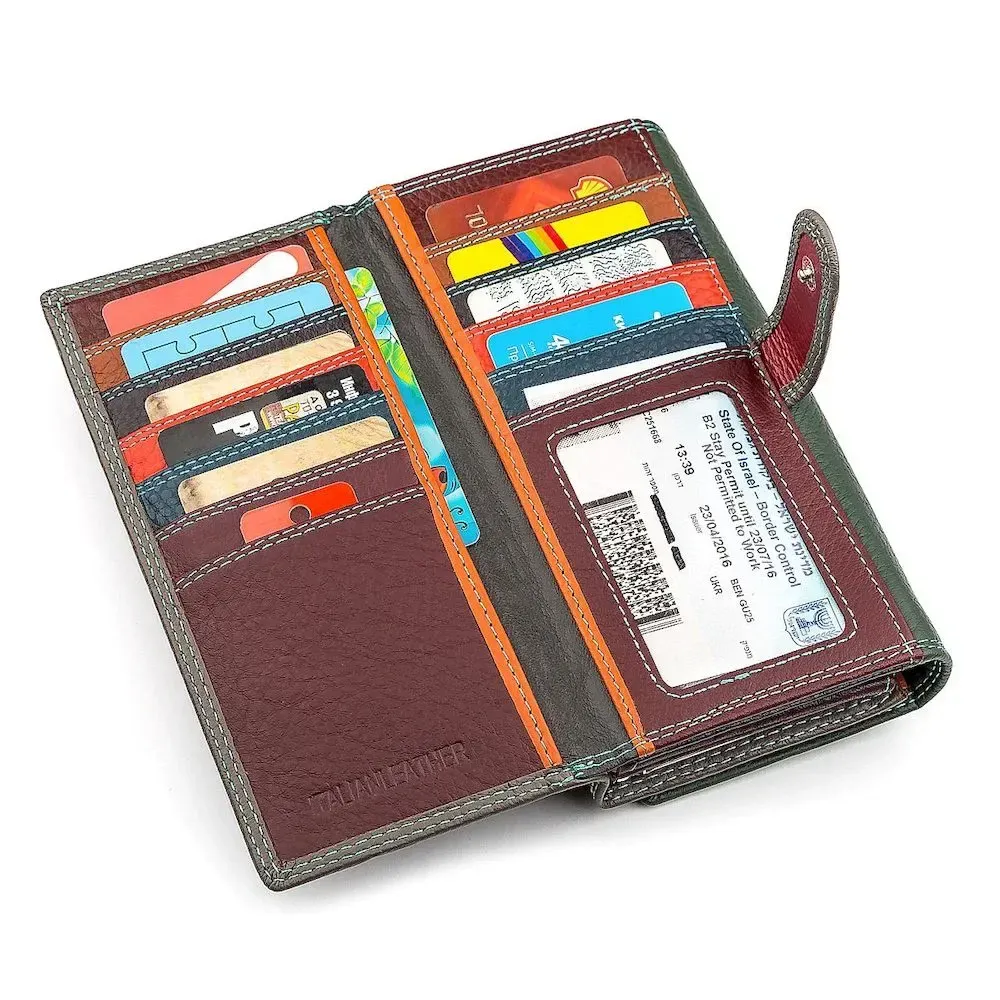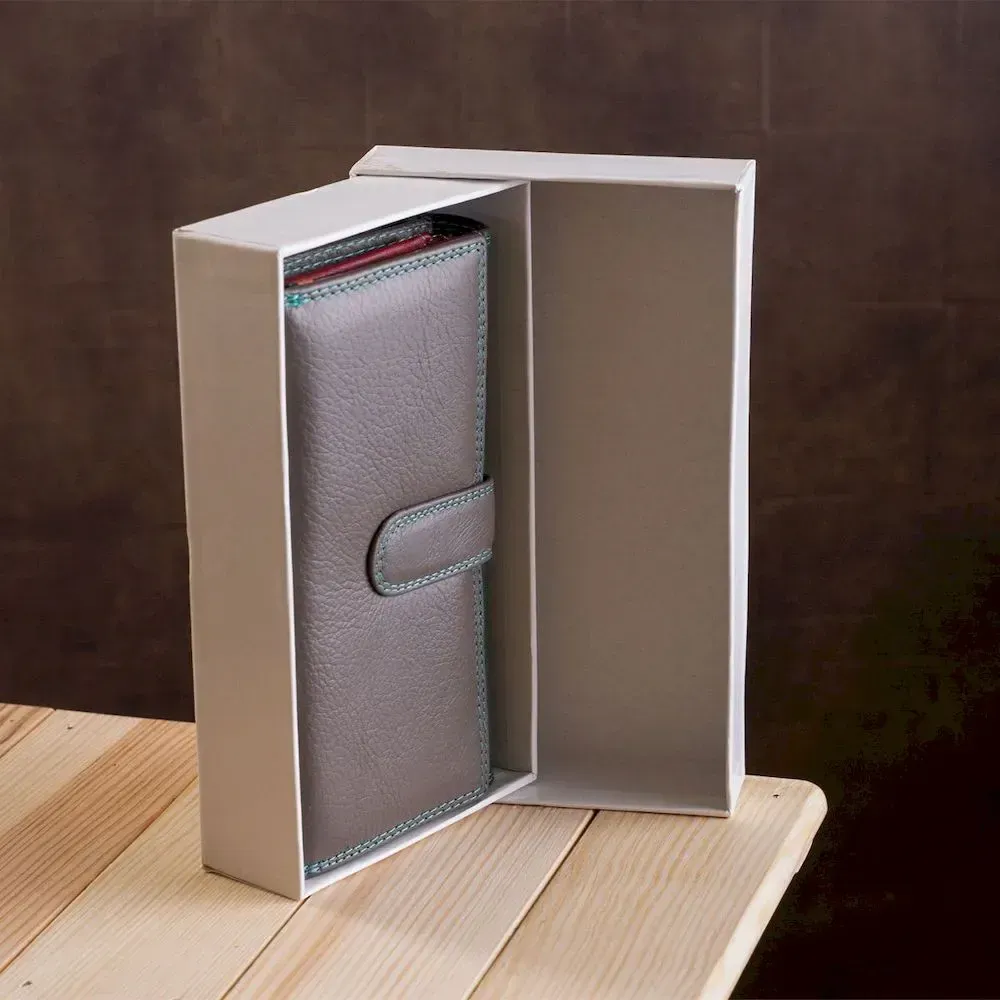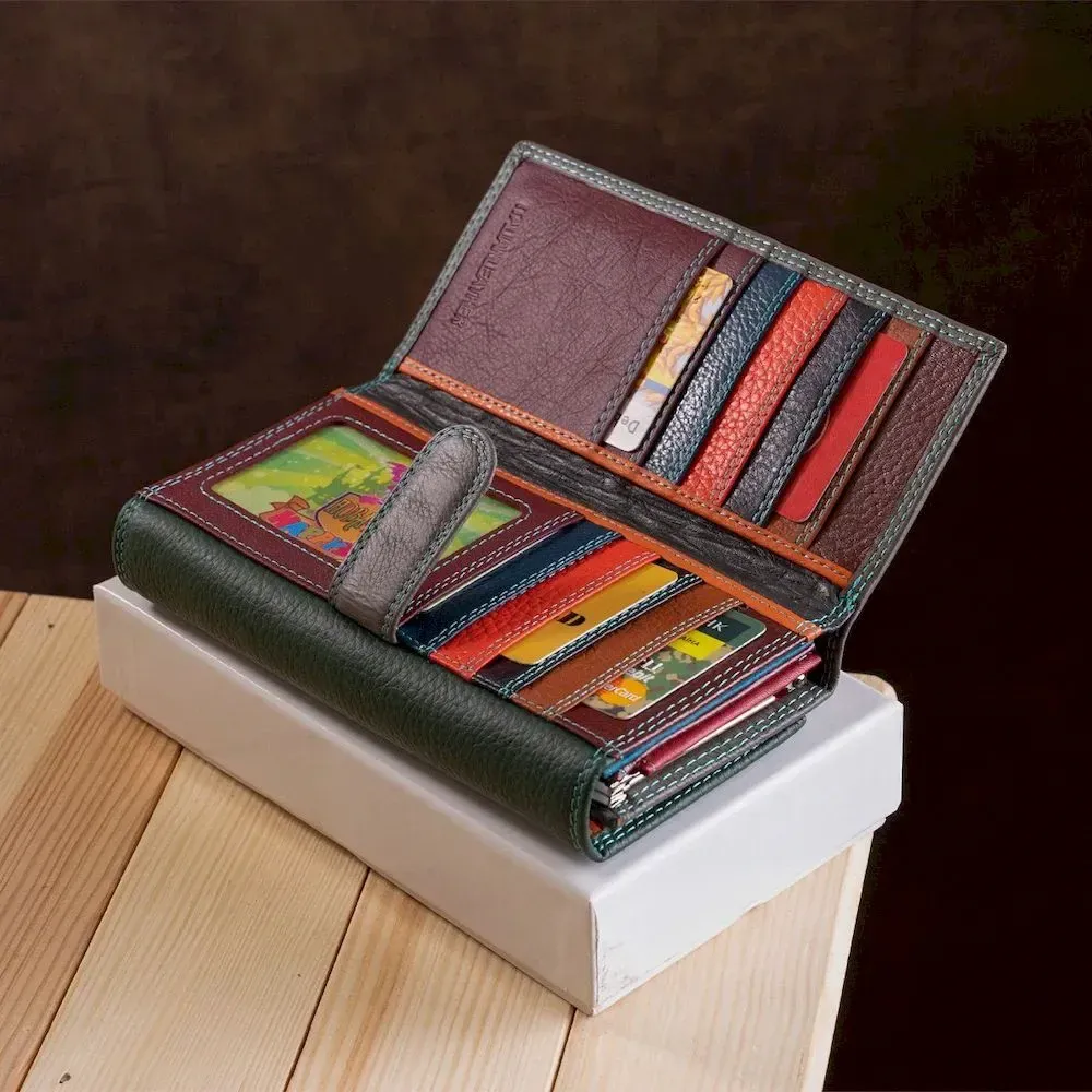 Представленная модель объединяет красочный дизайн, оформленный в зеленом и сером цветовых решениях, и прекрасную функциональность, с расширенным отделом, вынесенным отдельно для банковских карточек. Основная секция представлена вместительными отделениями и ячейками, а также отличной монетницей на защелке. Материал изготовления – натуральная, качественная кожа, которую дополняет свиная, в сочетании с текстильной подкладкой.