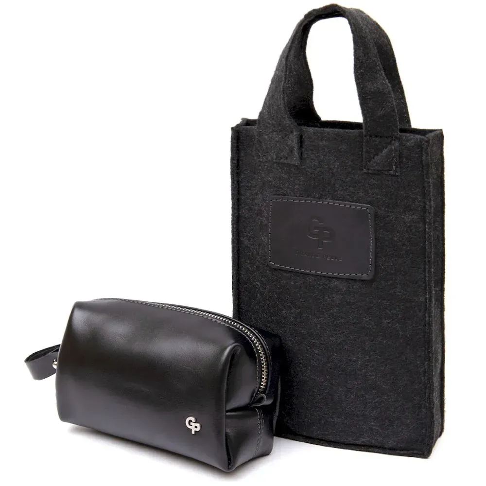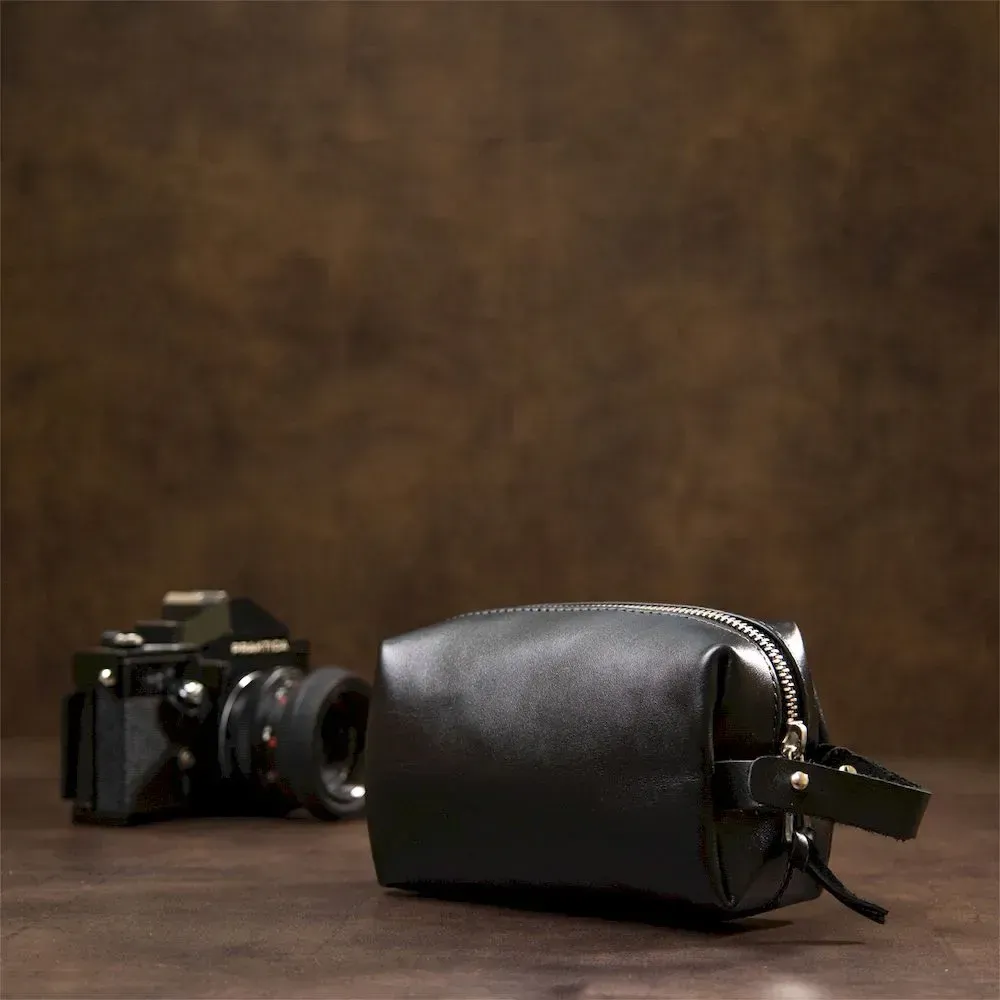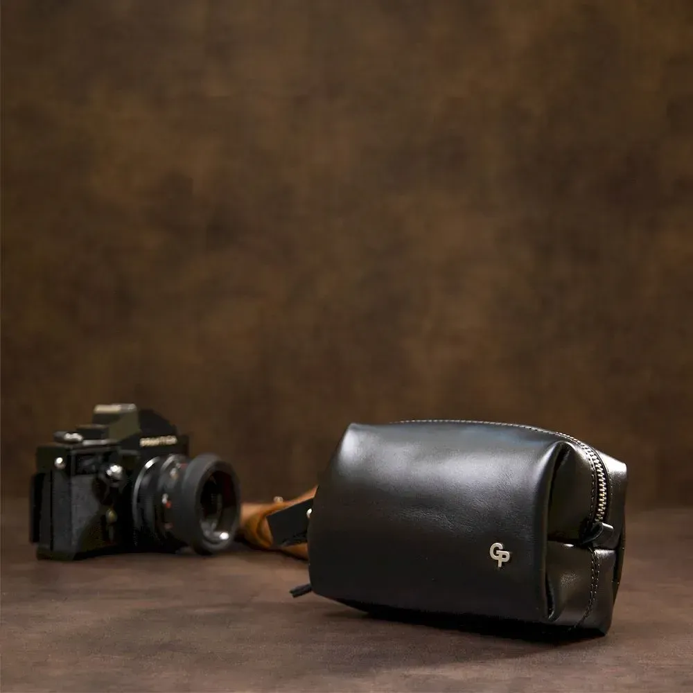Кожаная глянцевая мужская косметичка GRANDE PELLE 11413 Черный