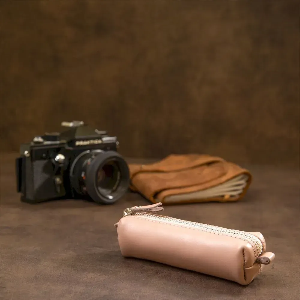 Кожаная ключница в красивом нежно-розовом цвете с серебреной фурнитурой. Выполнена она из высококлассной натуральной кожи с гладкой фактурой. Данный аксессуар просто необходим, если Вы хотите сохранить содержимое сумки в отличном состоянии, ведь все мы знаем, как ключи могут царапать телефон и прочие предметы. Также ключница станет хорошим презентом дорогому человеку.