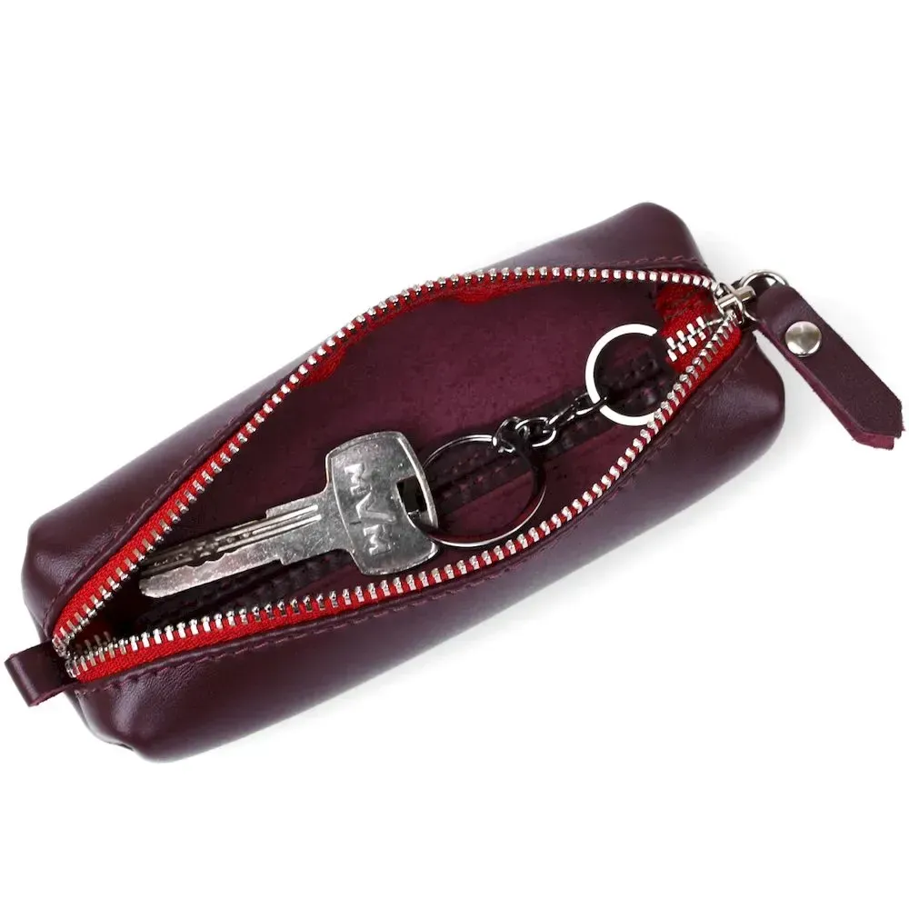 Отменная ключница из натуральной кожи высокого качества для защиты ключей. Имеет красивый насыщенный бордовый цвет и фурнитуру под серебро. Упакован аксессуар в фирменный плотный чехол, поэтому также станет отличным подарком дорогому человеку на любой праздник.
