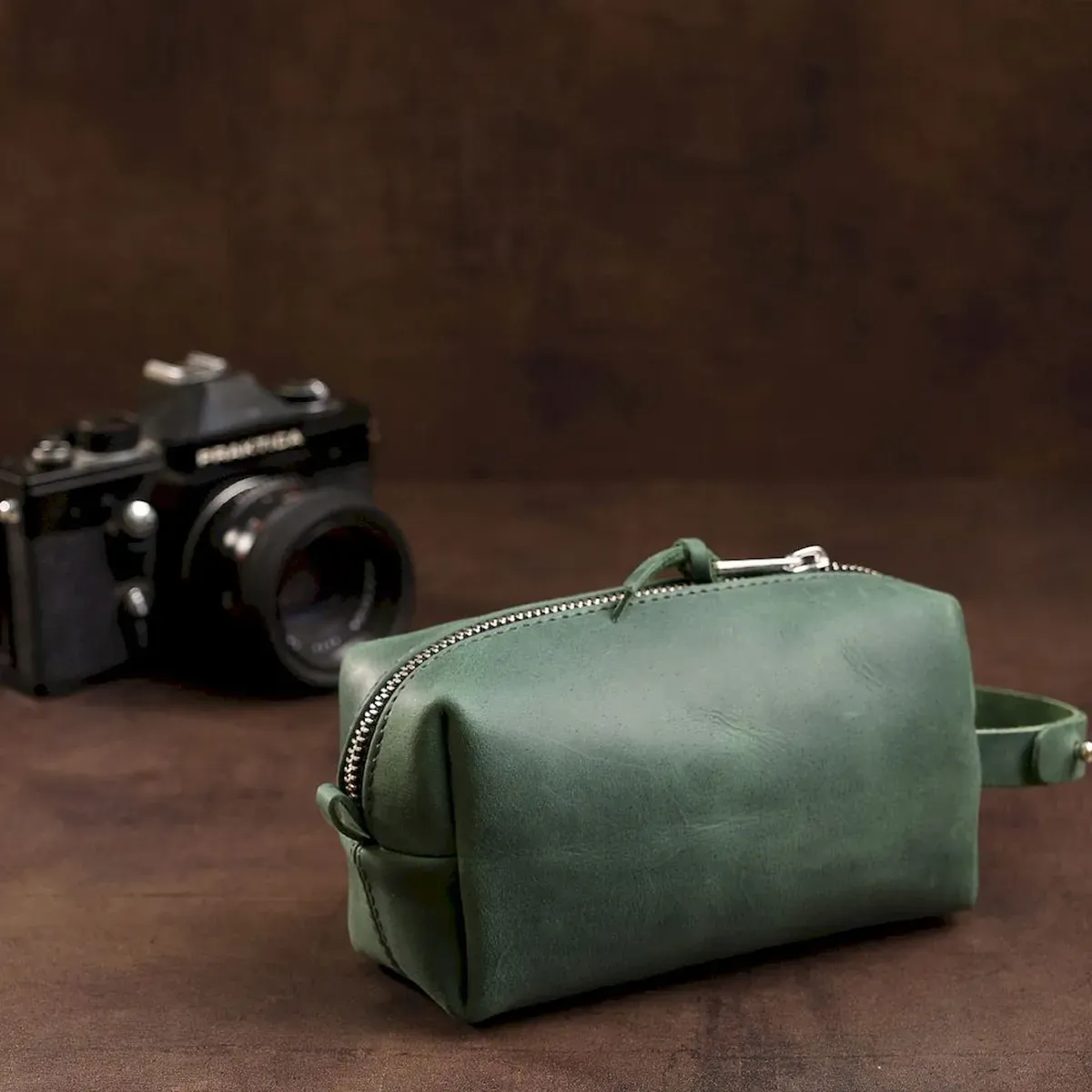 Оригинальная косметичка из натуральной высококлассной кожи с матовой гладкой фактурой. Закрывается изделие на молнию, сбоку есть кожаная ручка, чтобы переносить аксессуар в руках. Такая косметичка подойдет как женщинам, так и мужчинам для хранения любых необъёмных ценностей.