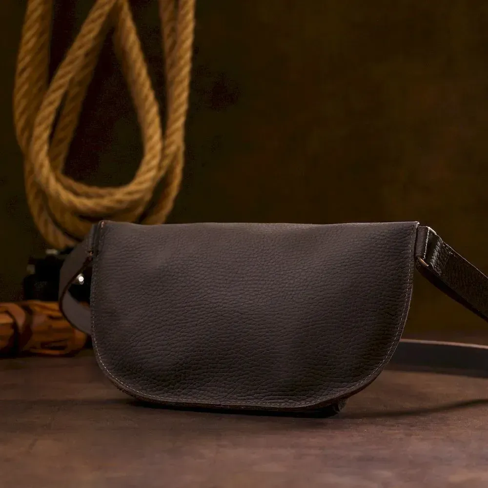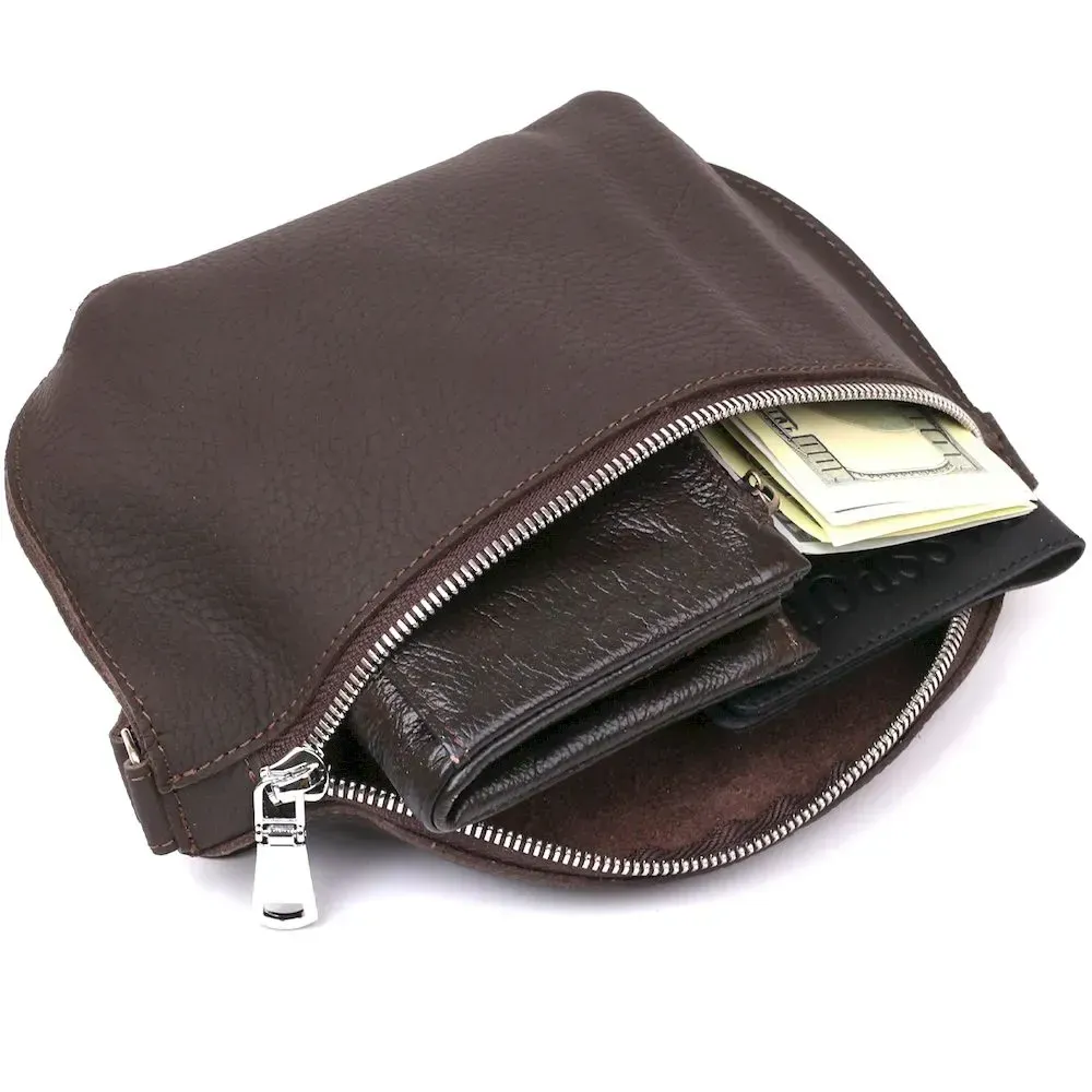 Кожаная матовая бананка Shvigel 16381 Коричневый