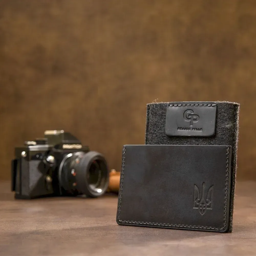 Интересное решение для хранения пенсионного удостоверения или прочего документа, например, пропуска на работу. Выполнена обложка из качественной натуральной кожи черного цвета украинским производителем. На обратной стороне изделия присутствует теснение в виде трезубца. Смотрится очень красиво и стильно.