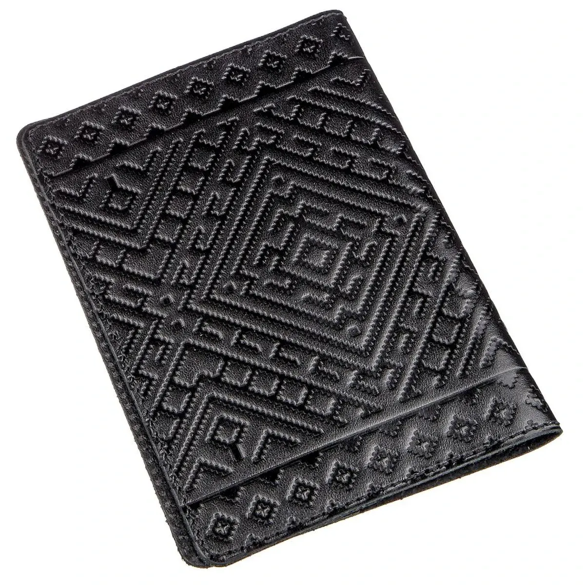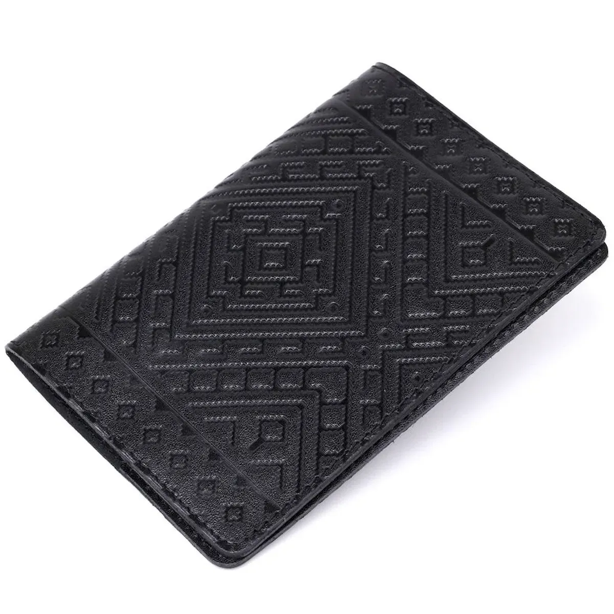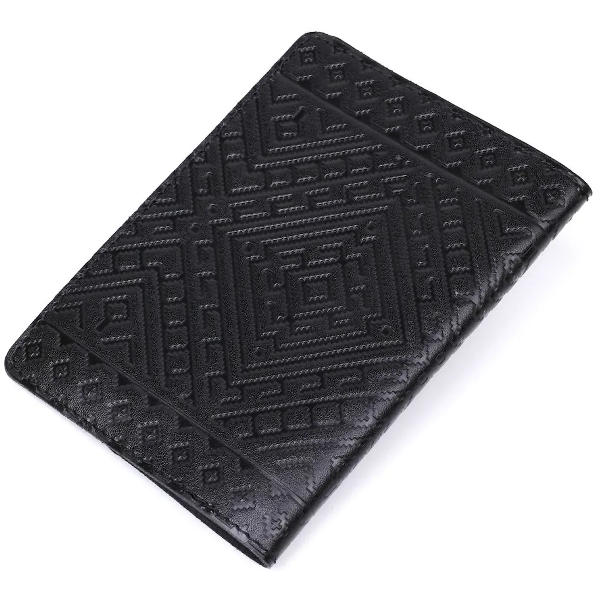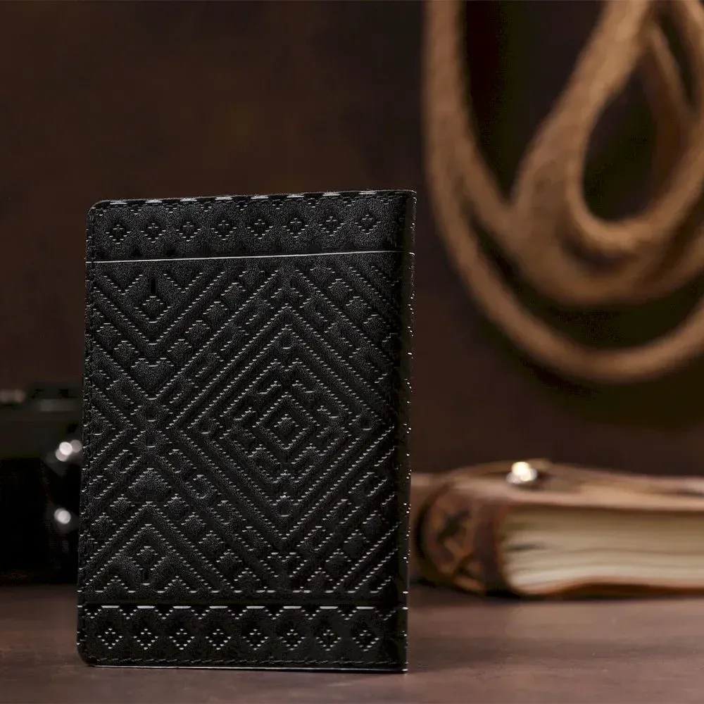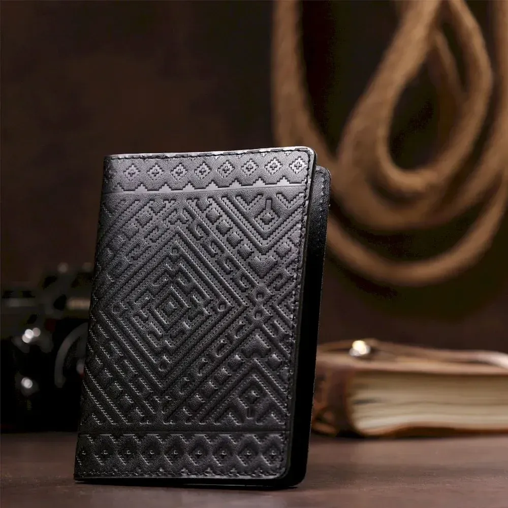 Кожаная обложка на паспорт с ромбами SHVIGEL 13973 Черная