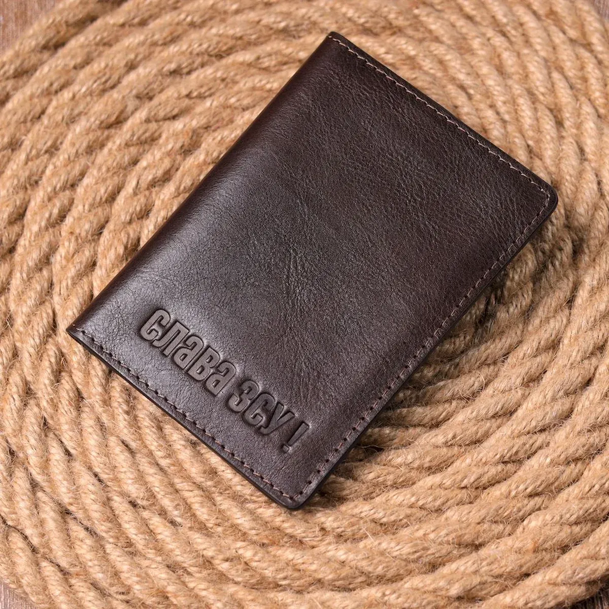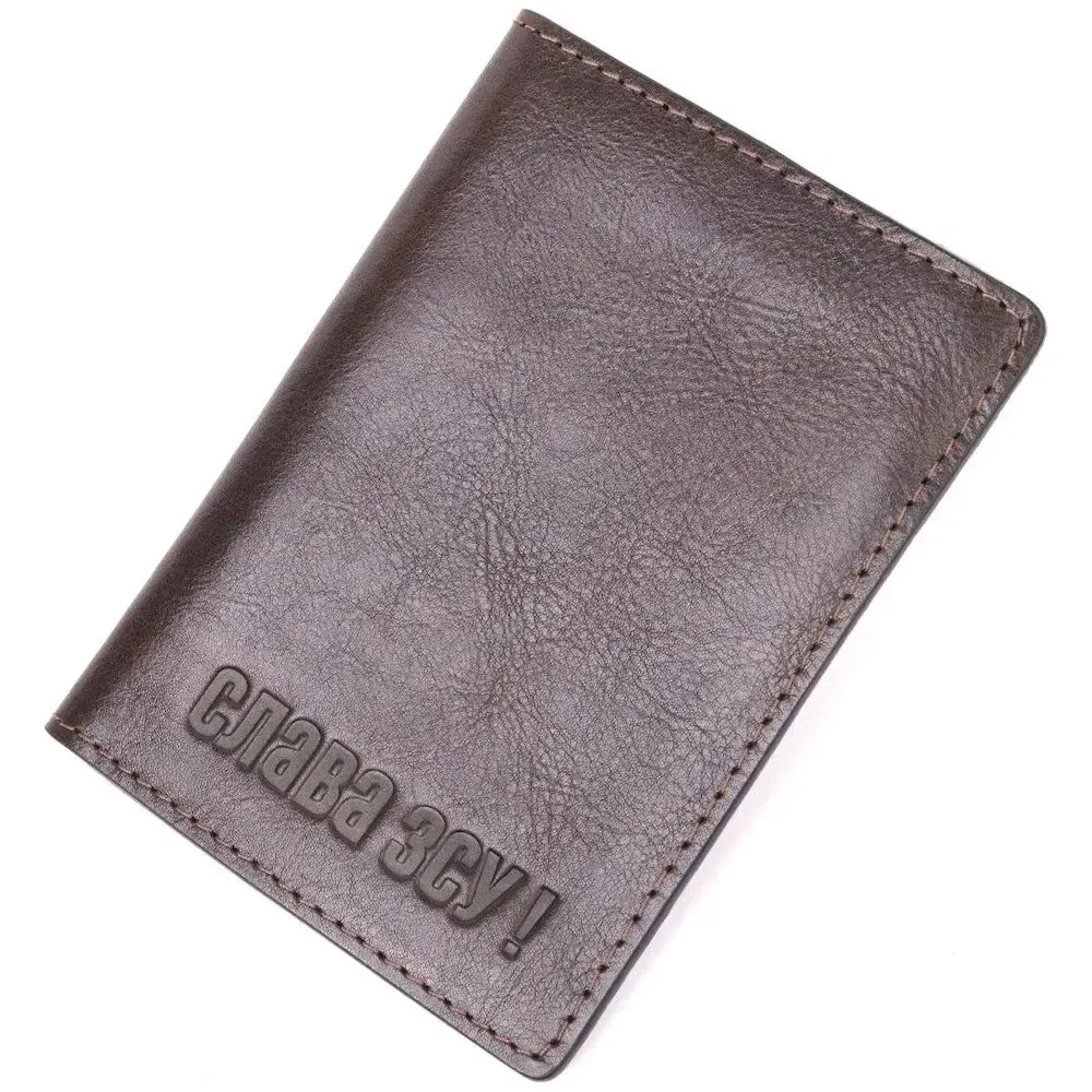 Кожаная обложка на военный билет Слава ЗСУ GRANDE PELLE 16747 Коричневая