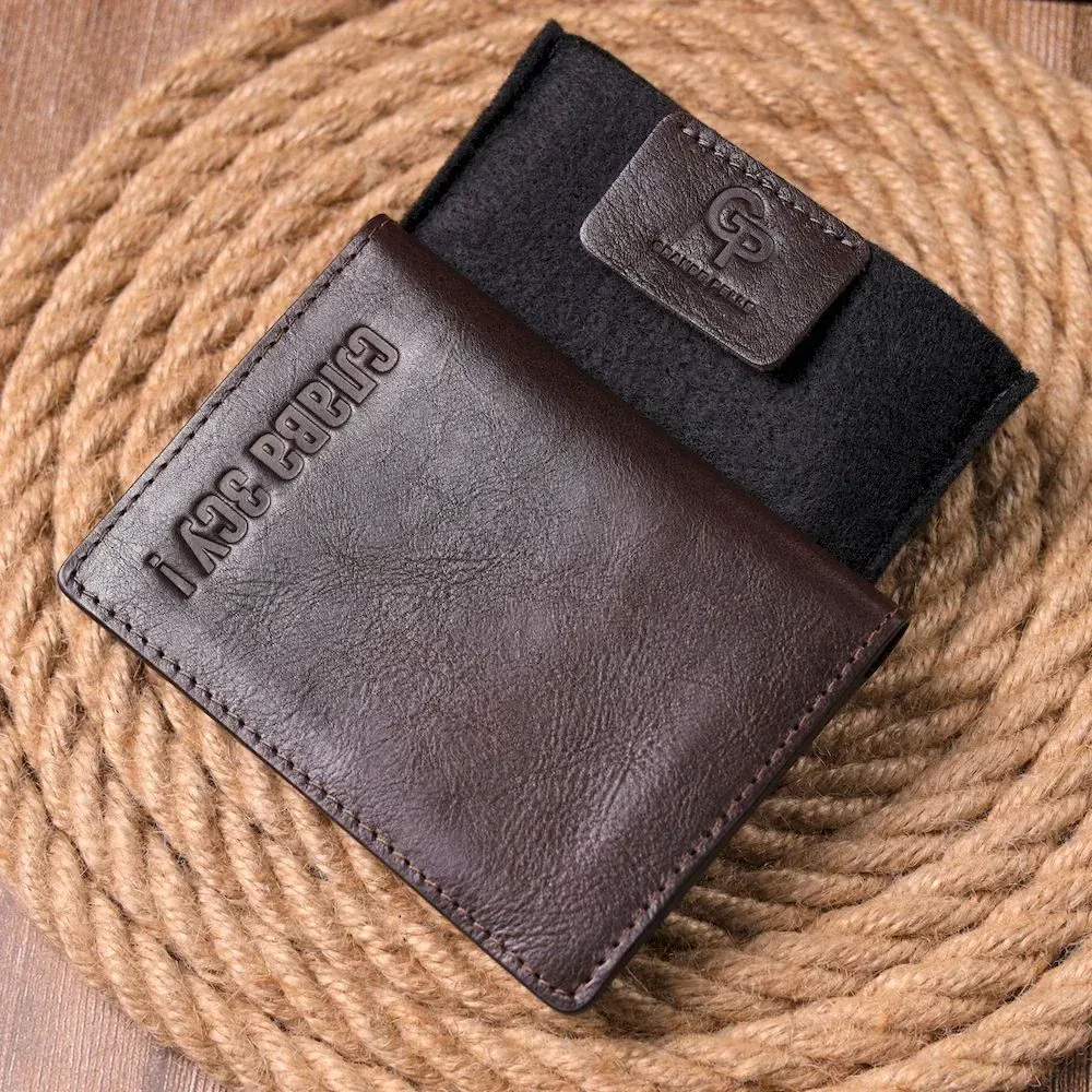 Практичная кожанная обложка для военного билета, коричневого цвета с патриотическим тиснением “ Слава ЗСУ”, на лицевой стороне. Изделие пошито с качественной итальянской кожи с высоким показателем износостойкости, которая защитит от повреждений документ на очень долгое время. Аксессуар имеет разворот для военного билета, две ячейки для карточек, без застежки, упакован в фирменный чехол.