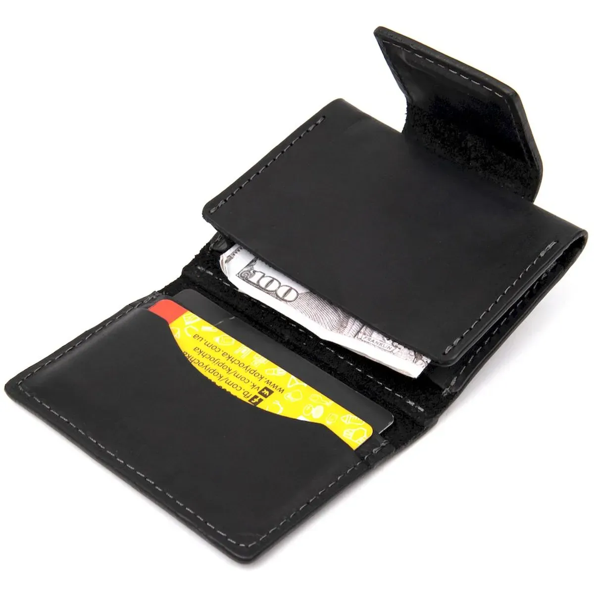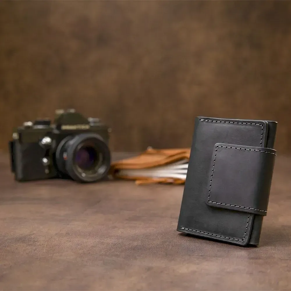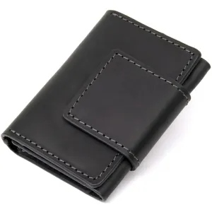 Практичная небольшая визитница из высококачественной натуральной кожи. Имеет универсальный черный цвет. Закрывается изделие на хлястик со скрытым магнитом, что очень удобно во время использования, так как карты легкодоступны. Такой презент станет отличным знаком внимания для дорогого Вам человека.