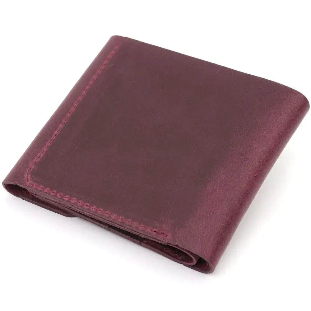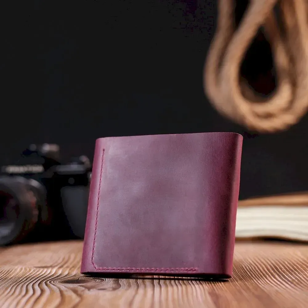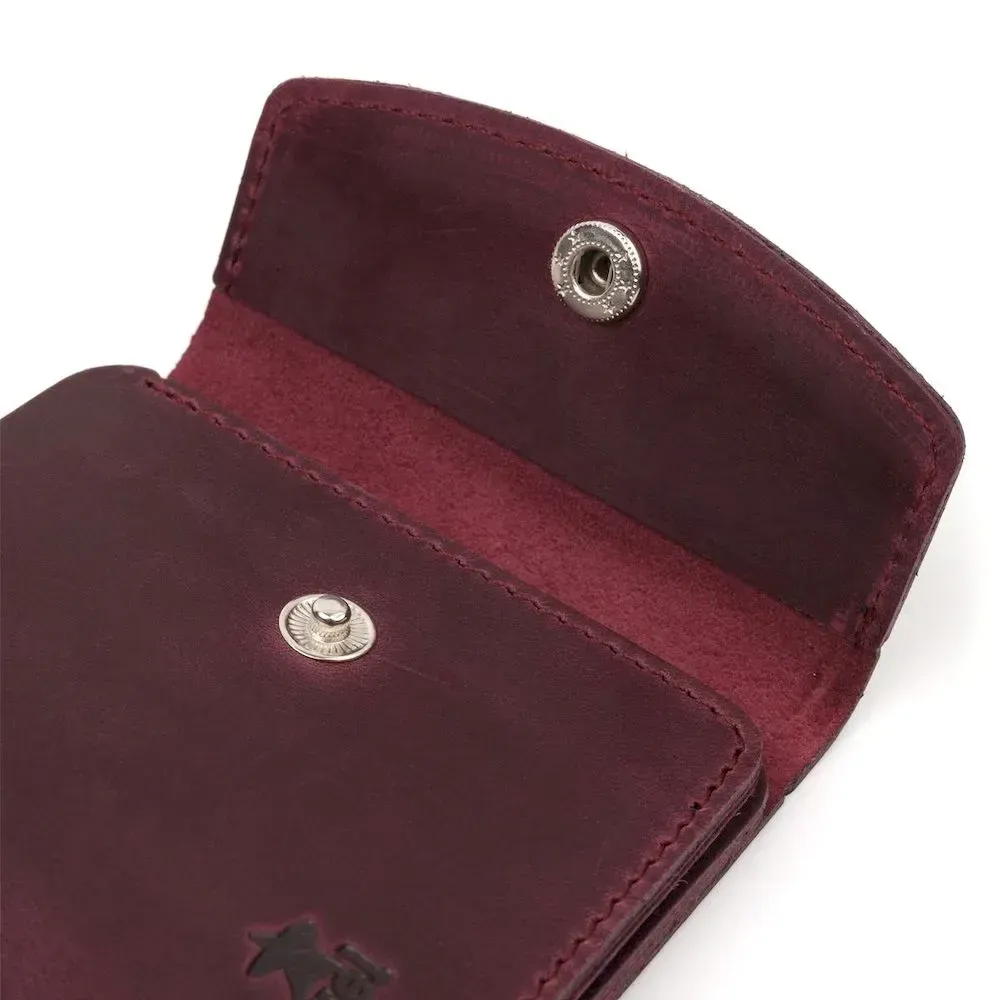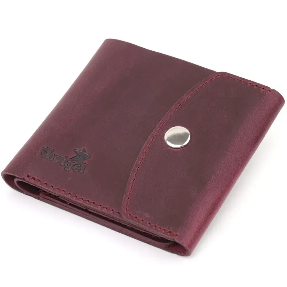 Необычный компактний кошелек бордовогого цвета, маленького размера, который легко поместится даже в самую маленькую сумочку. Аксессуар не займет много места и не имеет лишнего веса. Закрывается кошелек хлястиком с кнопкой. Снаружи и внутри изделие изготовлено из натуральной кожи. На лицевой стороне кошелек украшен тисненым логотипом Shvigel. Добротная винтажная кожа прослужит вам очень долго.