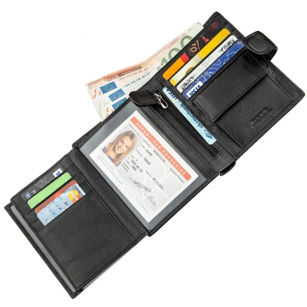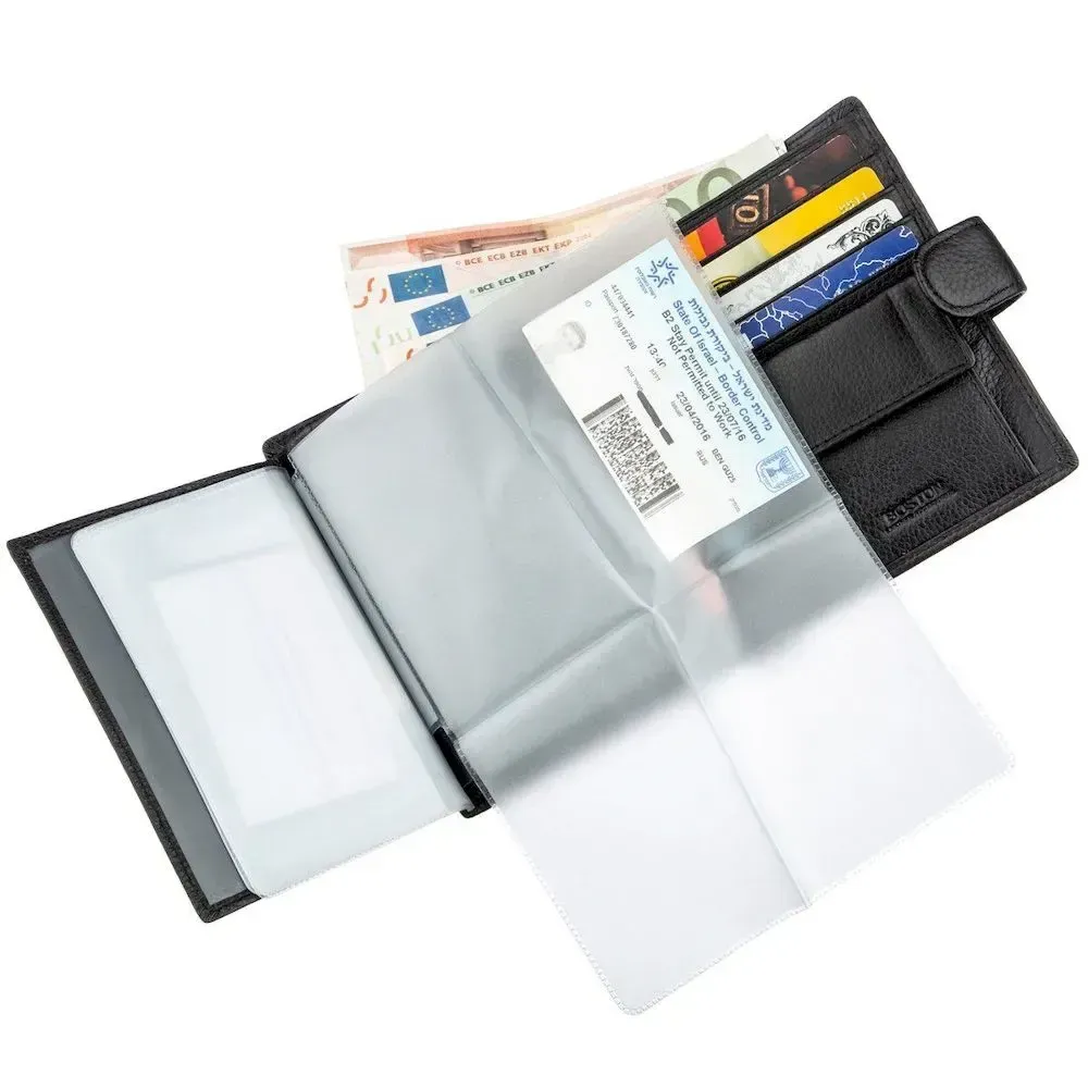 Превосходное мужское портмоне из натуральной кожи высокого качества. Сделан в элегантном черном стиле для деловых и уверенных в себе мужчин. Имеет много различных отделений для купюр, монет и прочих ценностей. Также есть много отделений для пластиковых карт и визиток. Ну и очень важным элементов есть наличие прозрачных вкладышей для документов, в том числе и для страховки или идентификационного кода. Такое портмоне вполне может заменить небольшую сумку или борсетку, поэтому данное изделие станет прекрасным приобретением. Упакован кошелек в фирменную коробку.