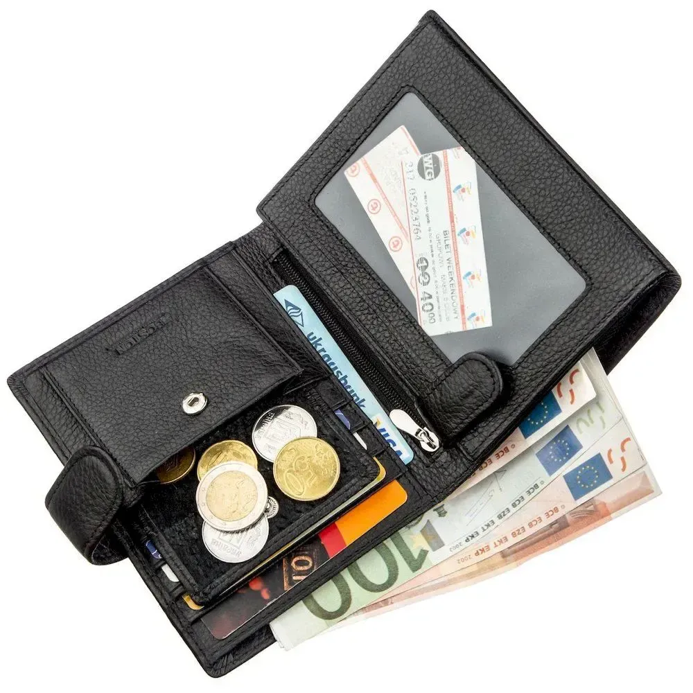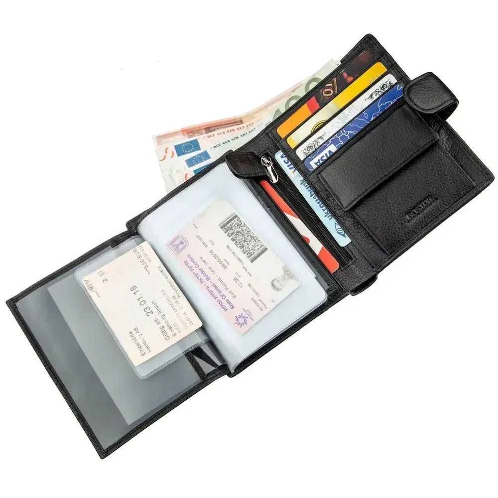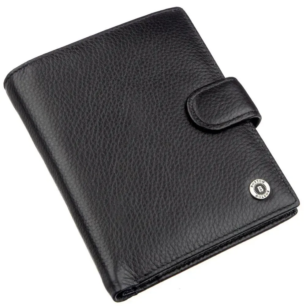 Кожаное мужское портмоне на кнопке Boston 18822 Черный