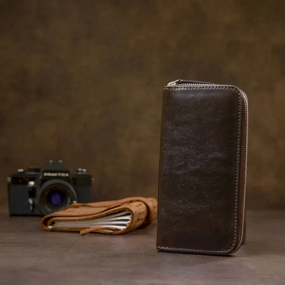 Практичное портмоне на молнии для женщин. Выполнено из натуральной высококачественной кожи, гладкой и приятной на ощупь. Внутри присутствуют вместительные отделения для купюр, мелочи и слоты для кредитных и визитных карточек. Изделие отлично подойдет на подарок близкому человеку.