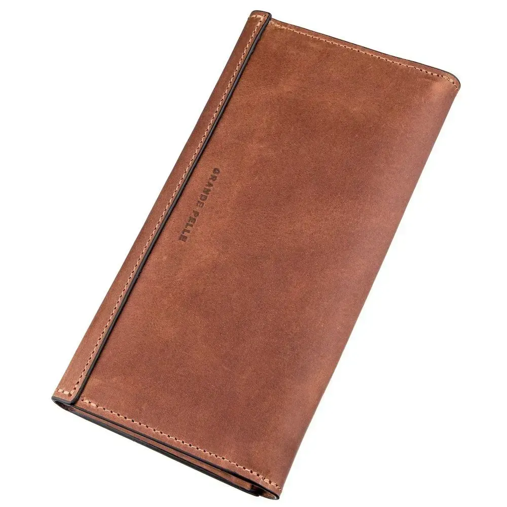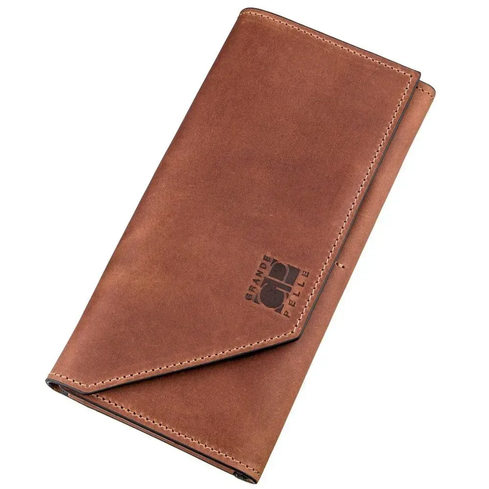Кожаный горизонтальный клатч унисекс из итальянской кожи GRANDE PELLE 11237 Коричневый