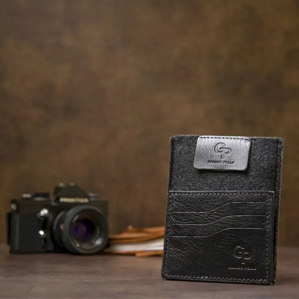 Интересный кожаный картхолдер из натуральной кожи в универсальном черном цвете. Имеет шесть слотов для карт и визиток, а также по средине имеется отделение для банкнот или для еще других карт. Упакован аксессуар в фирменный прочный чехол