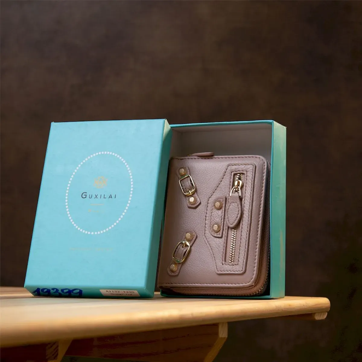 Кожаный симпатичный женский кошелек Guxilai 19398 Светло-розовый