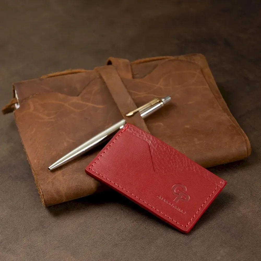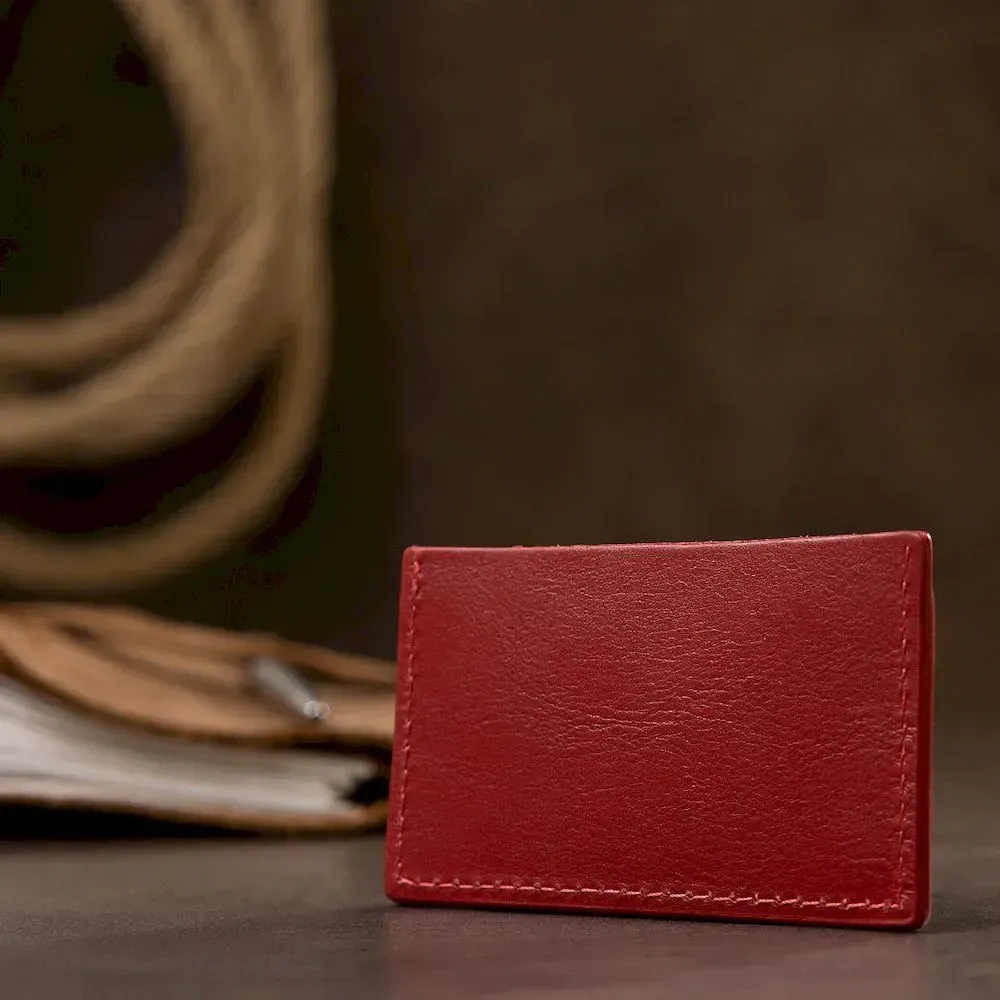 Маленький кожаный женский картхолдер на два отделения из прочной и высококачественной натуральной кожи. Имеет красивый насыщенный красный цвет. Благодаря своему размеру, с легкость поместится даже в небольшое портмоне. Упакован аксессуар в фирменный плотный чехол.