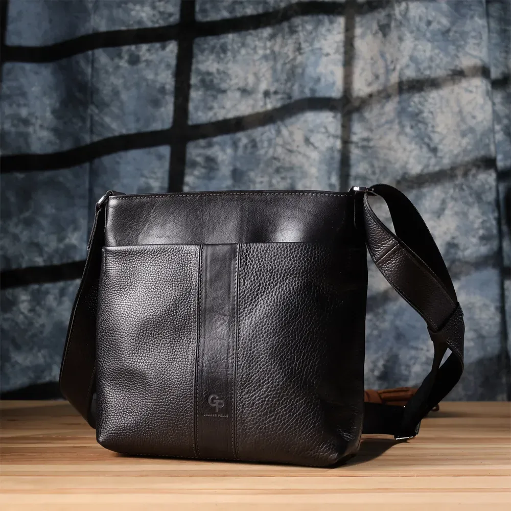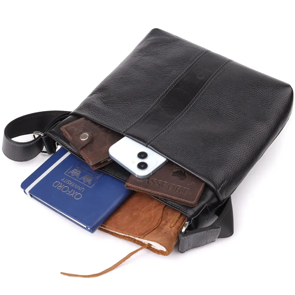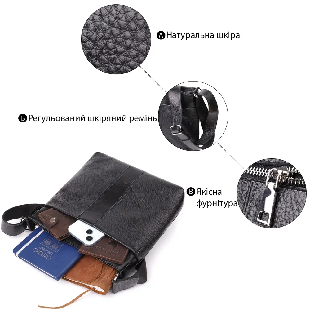 Красива сумка через плече для чоловіків із натуральної шкіри GRANDE PELLE 22883 Чорна