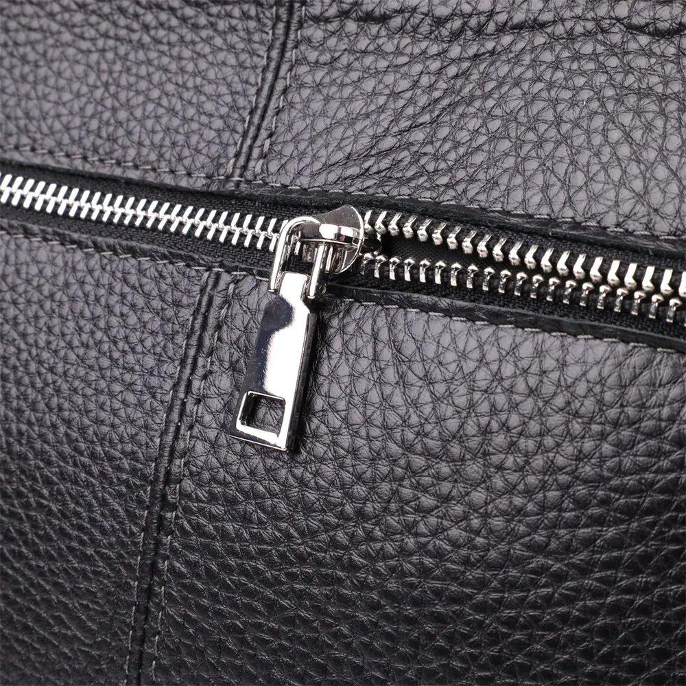 Практична та стильна сумка, виконана з натуральної шкіри високої якості. Універсальний чорний колір робить аксесуар доречним як у діловому, так і повсякденному образі. Цікава особливість моделі – поєднання двох фактур шкіри: гладкої та зернистої, що надає виробу виразності та підкреслює індивідуальність власника. Сумка відрізняється міцністю, надійністю та довговічністю, а завдяки продуманому дизайну в неї легко поміщаються всі необхідні речі. Це відмінне рішення для активних та сучасних людей, які цінують комфорт, якість та стиль. Поставляється в оригінальному фірмовому чохлі, що робить її не тільки зручним аксесуаром, а й гідним подарунком.