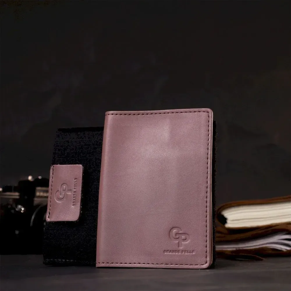 Красивая кожаная обложка на паспорт GRANDE PELLE 16795 Пудровый