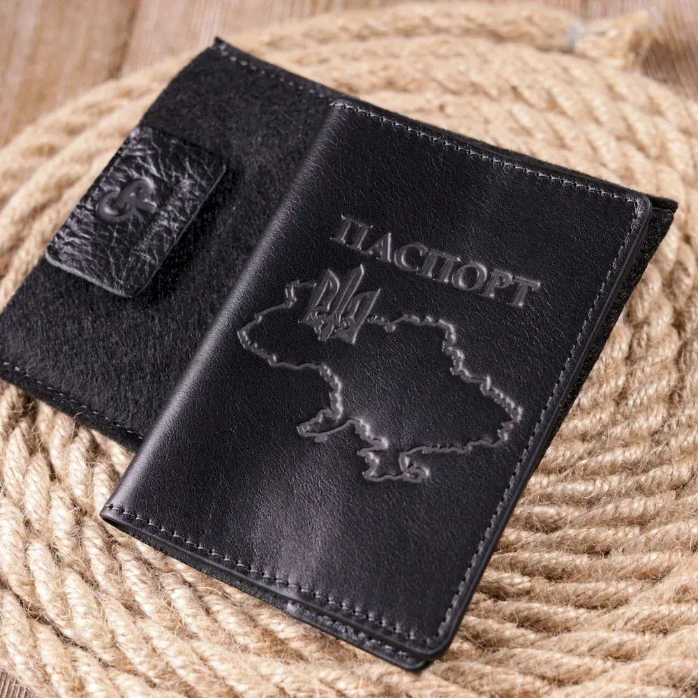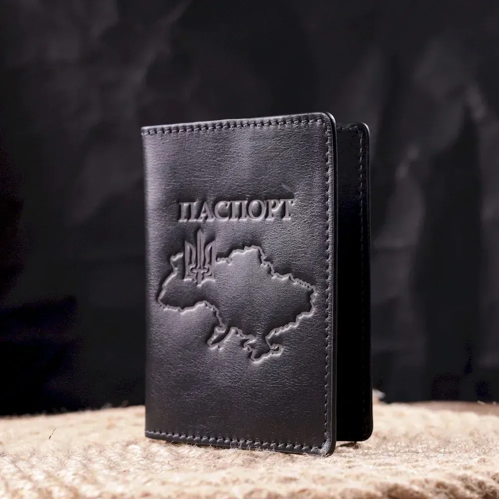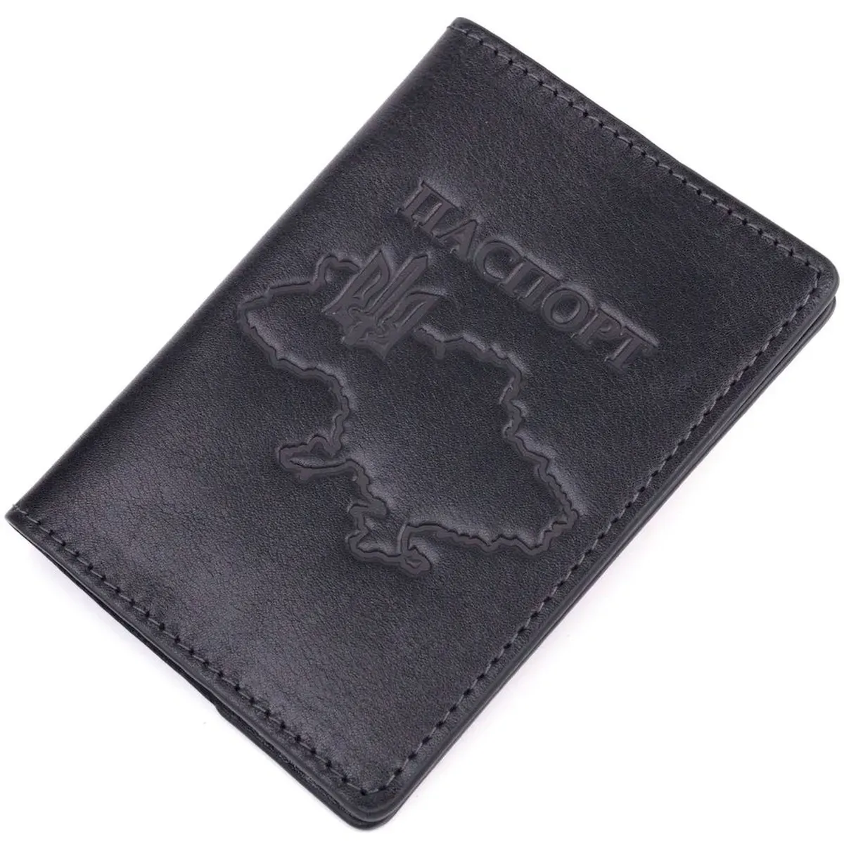 Красивая кожаная обложка на паспорт Карта GRANDE PELLE 16773 Черная