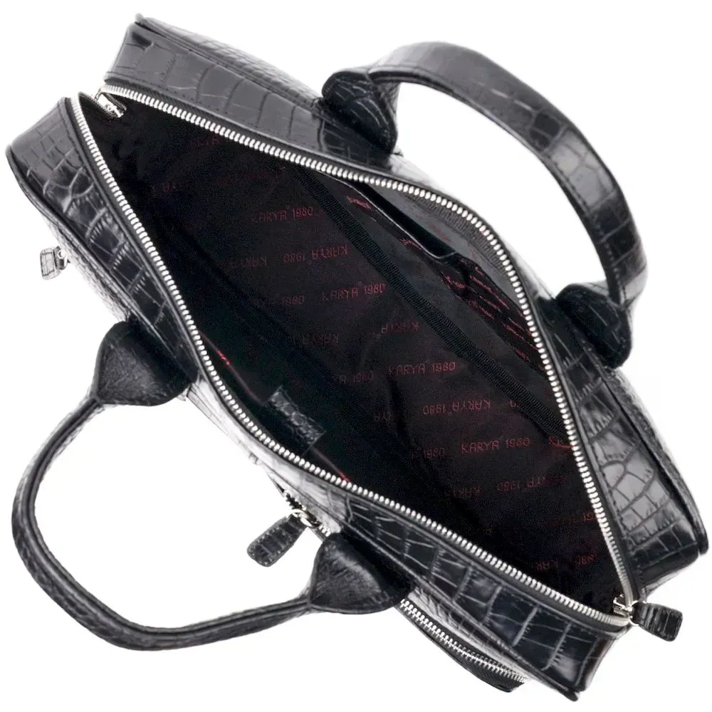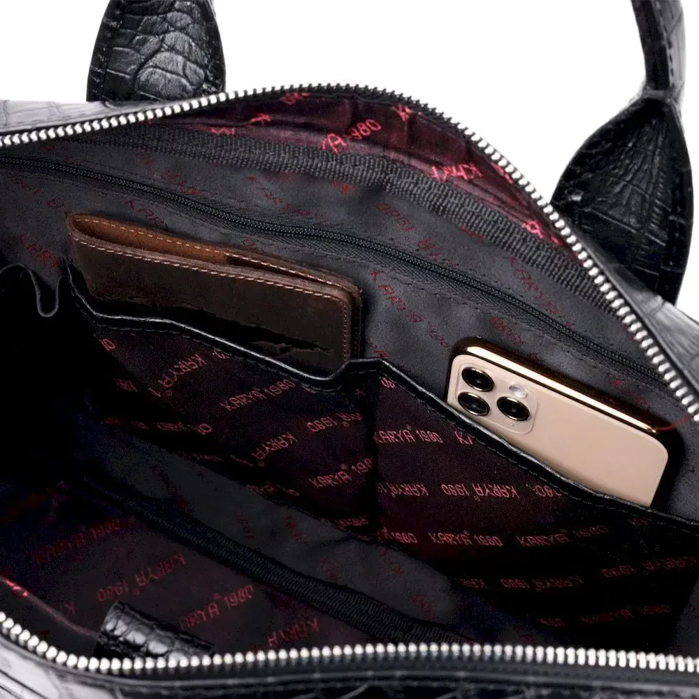 Красивая мужская сумка-портфель из фактурной кожи KARYA 20873 Черный