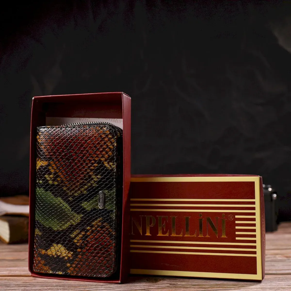 Красивое лакированное женское портмоне среднего размера из натуральной кожи с тиснением под змею CANPELLINI 21716 Разноцветное