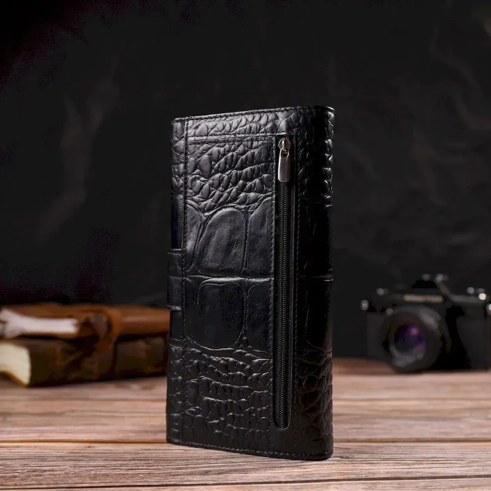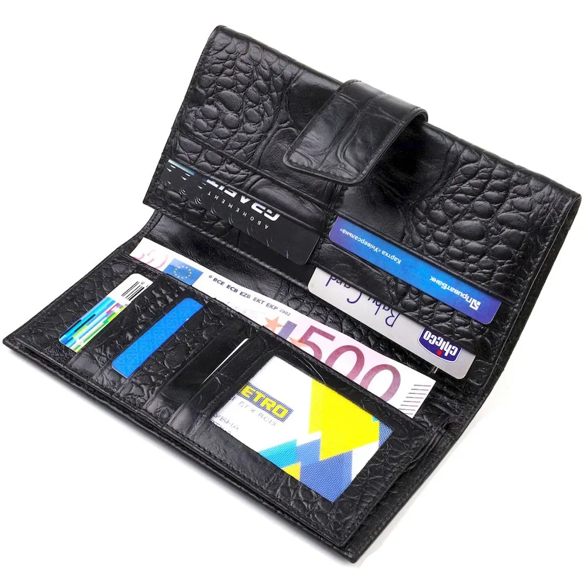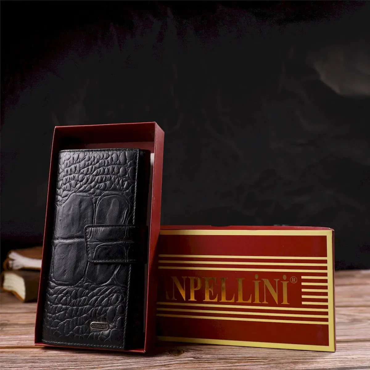Красивое вертикальное мужское портмоне из натуральной кожи с тиснением под крокодила CANPELLINI 21844 Черное