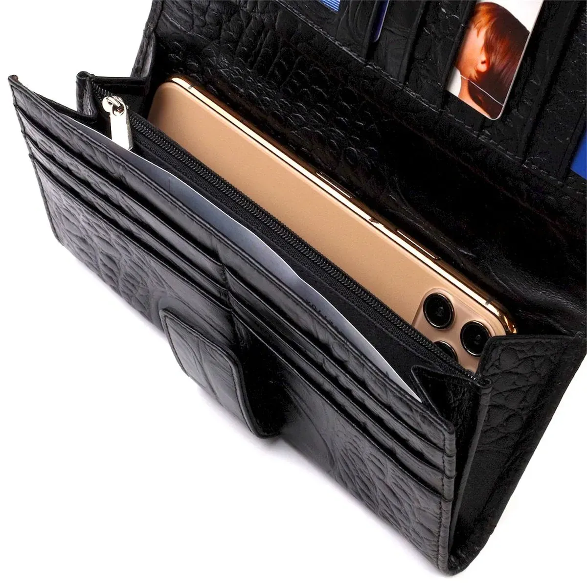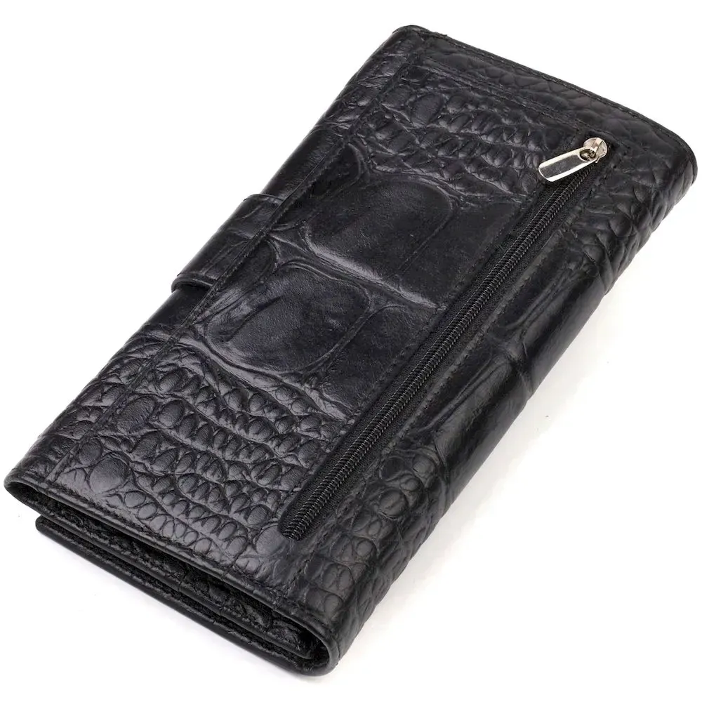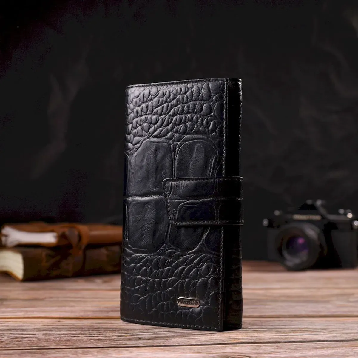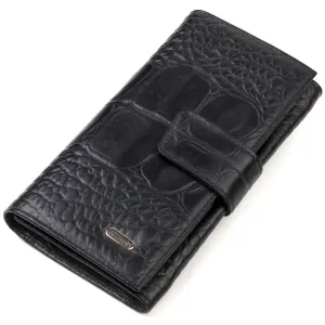 Красивое вертикальное мужское портмоне из натуральной кожи с тиснением под крокодила CANPELLINI 21844 Черное