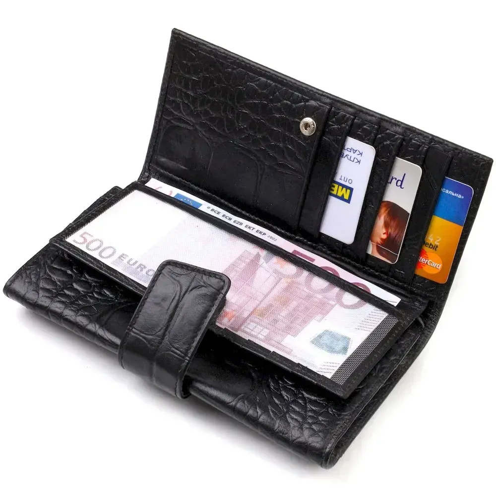 Оригинальное портмоне для стильных и уверенных в себе людей, изделие из натуральной кожи с тиснением под крокодила. Аксессуар имеет одно основное отделение с тканевой перегородкой на молнии, восемнадцать карманов для карточек, карман под сеточкой для пропуска, два скрытых кармана и монетницу. Закрывается аксессуар в два сложения хлястиком на кнопку. На лицевой стороне, в правом нижнем углу металлический логотип компании производителя. Приобретая кожаный аксессуар этой фирмы, себе или на подарок, будьте уверены, что он прослужит Вам не один год.