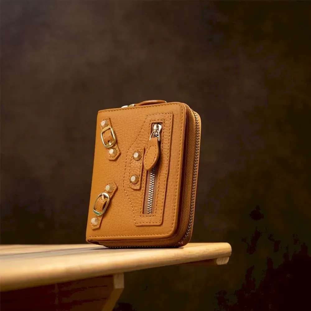 Замечательный небольшой кошелек из натуральной кожи. Имеет красивый и необычный дизайн, а также функциональное наполнение, которое представлено в виде вместительных отделений для купюр, монет и карточек. На внешней стороне имеется оригинальный маленький кармашек на молнии. Данное изделие обязательно станет Вашим незаменимым аксессуаром.