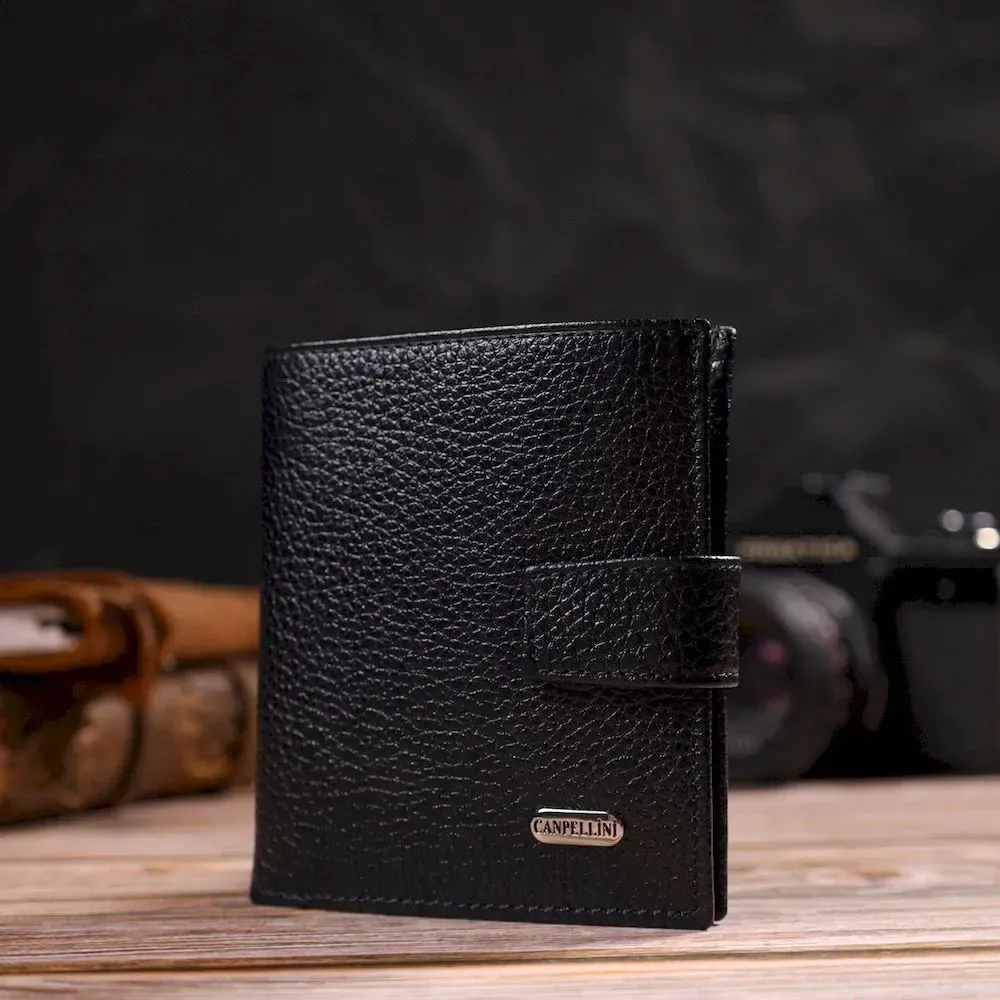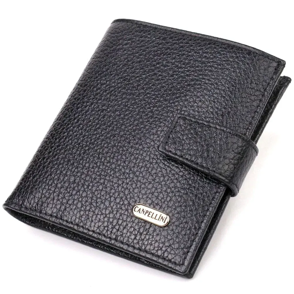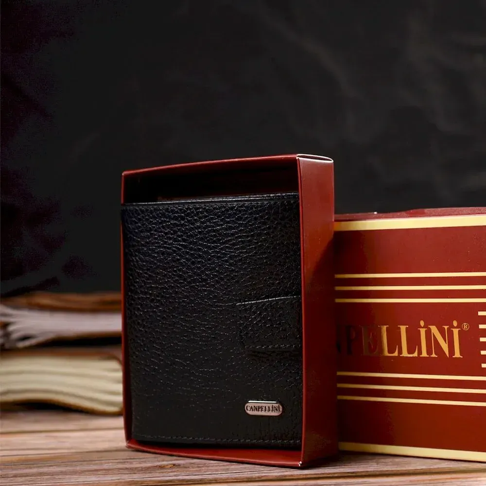 Красивый мужской бумажник из натуральной зернистой кожи CANPELLINI 21730 Черный