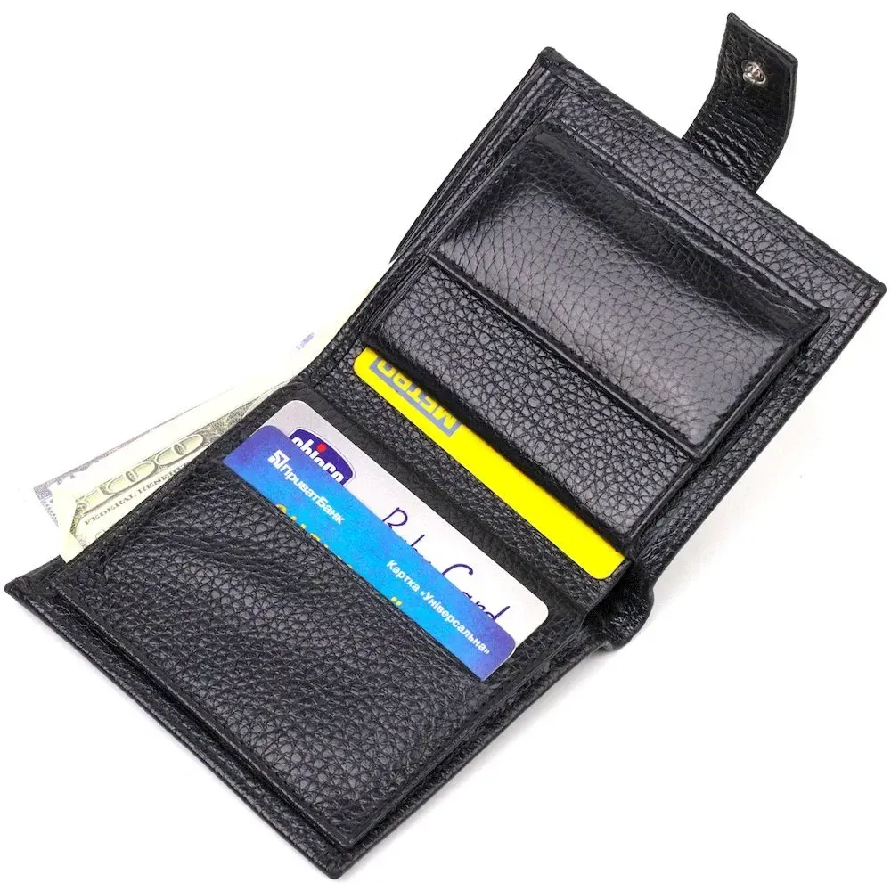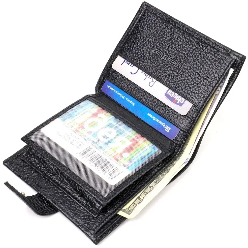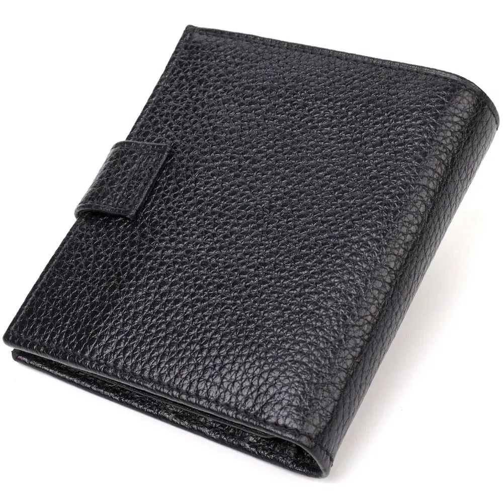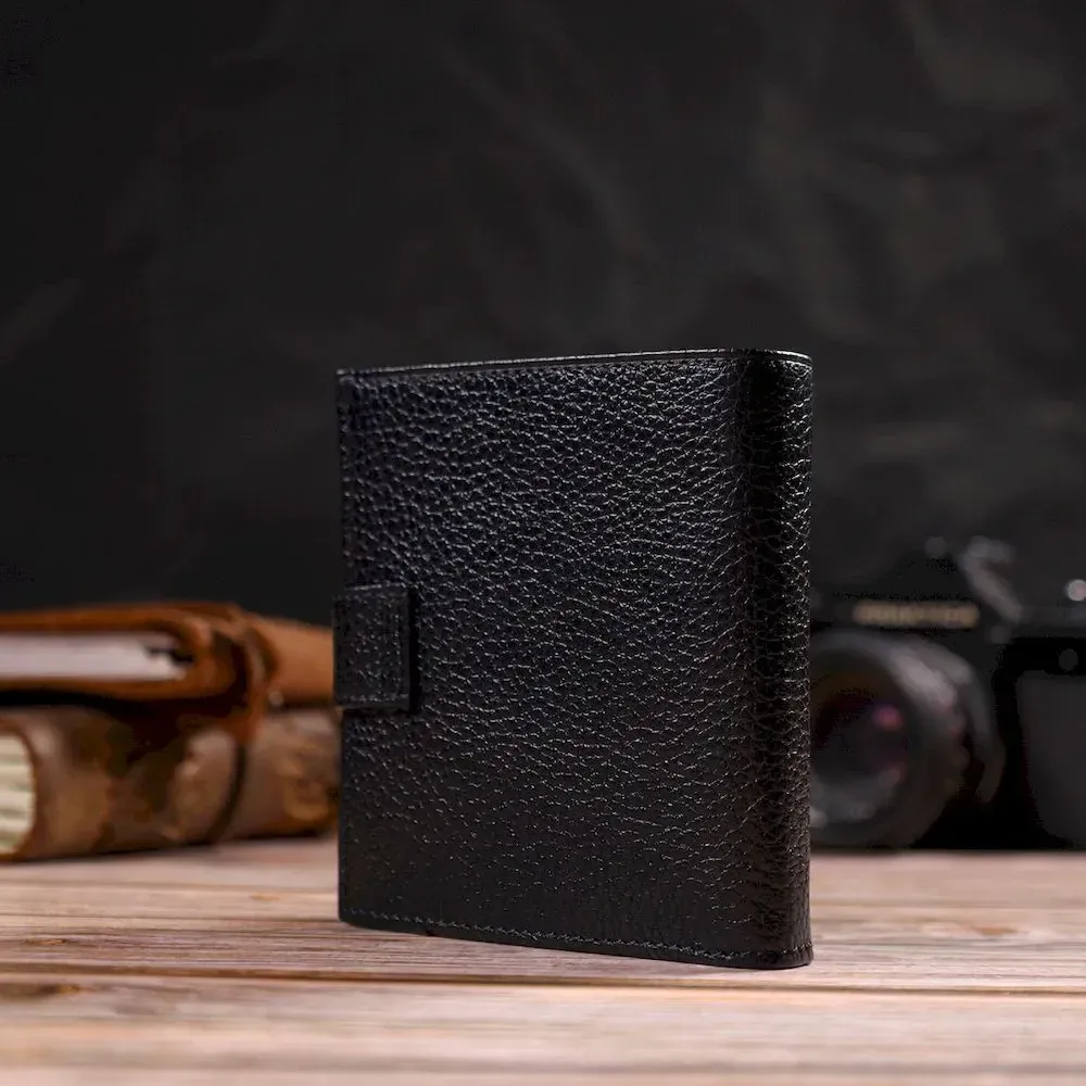 Стильный компактный мужской кошелек из натуральной зернистой кожи. Аксессуар имеет основное отделения с перегородкой, пять отсеков для карточек, два прилегающих кармана, прозрачный карман для документов и монетницу. Закрывается аксессуар хлястиком на кнопку. Отличный аксессуар от надежного производителя, который прослужит очень долго.