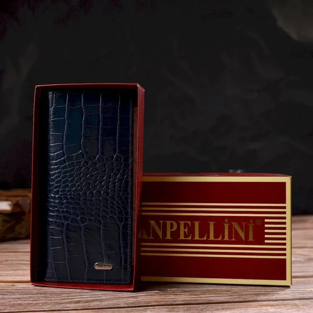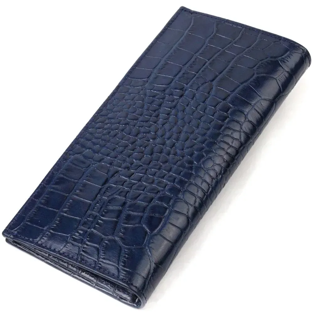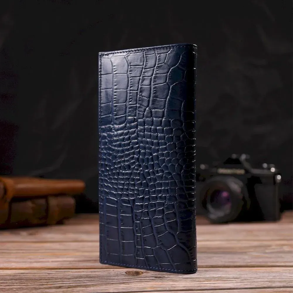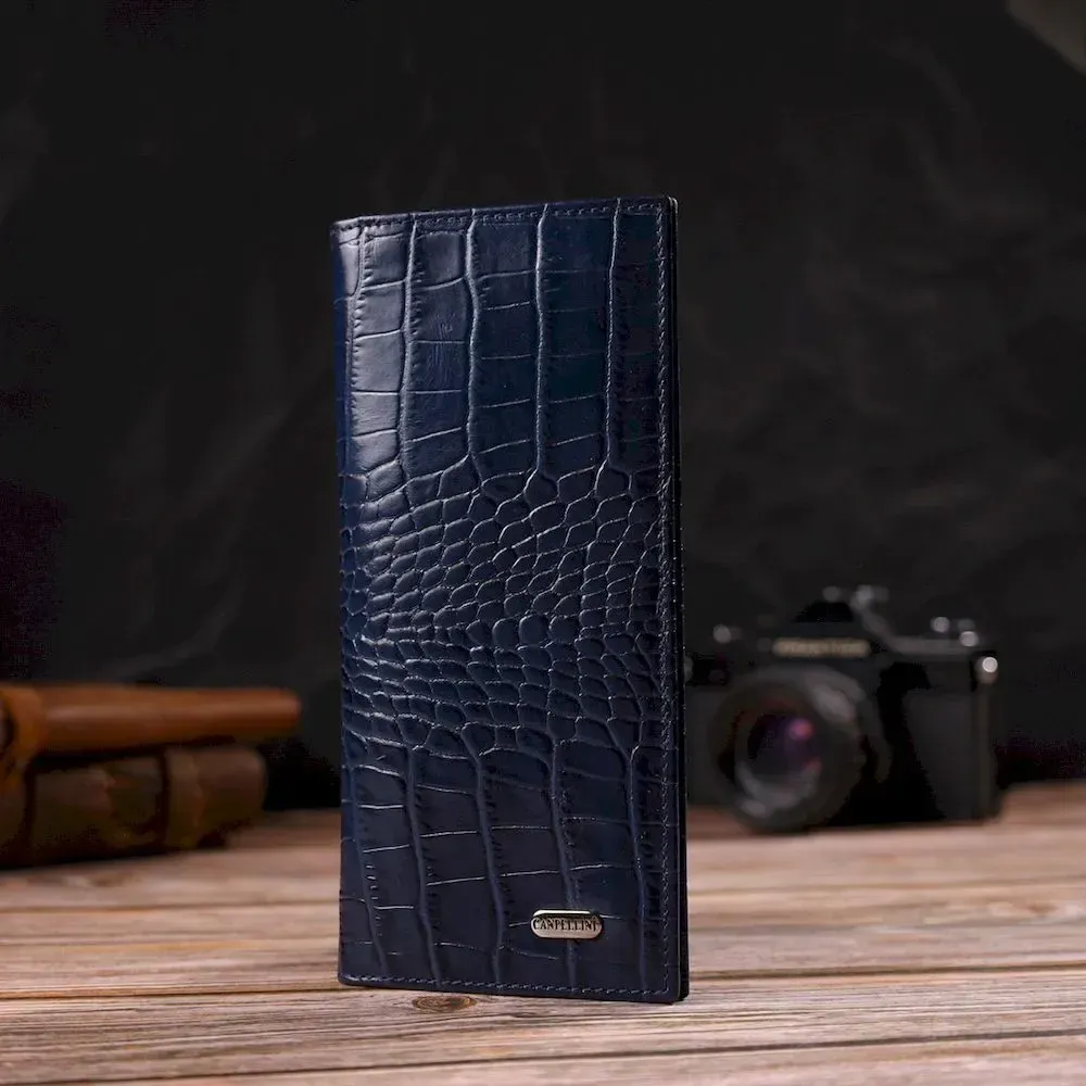 Красивый мужской вертикальный бумажник из натуральной кожи с тиснением под крокодила CANPELLINI 21901 Синий