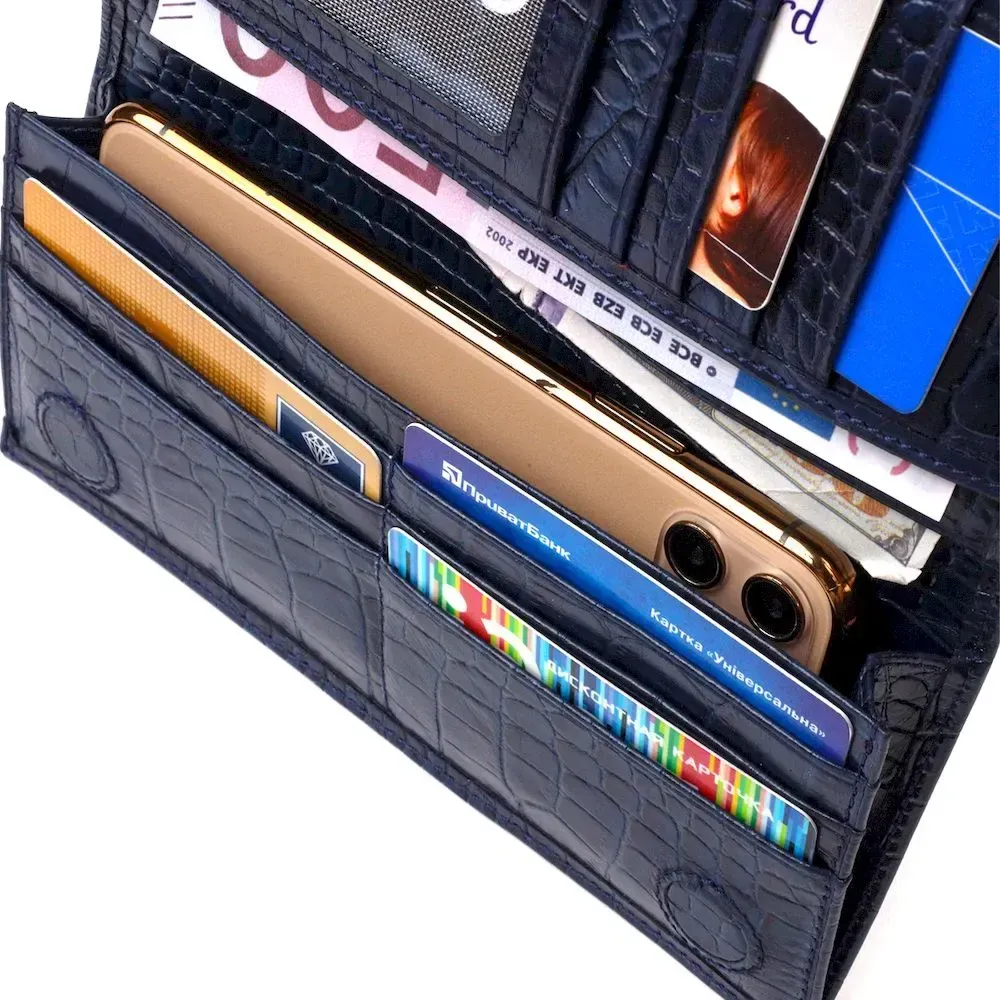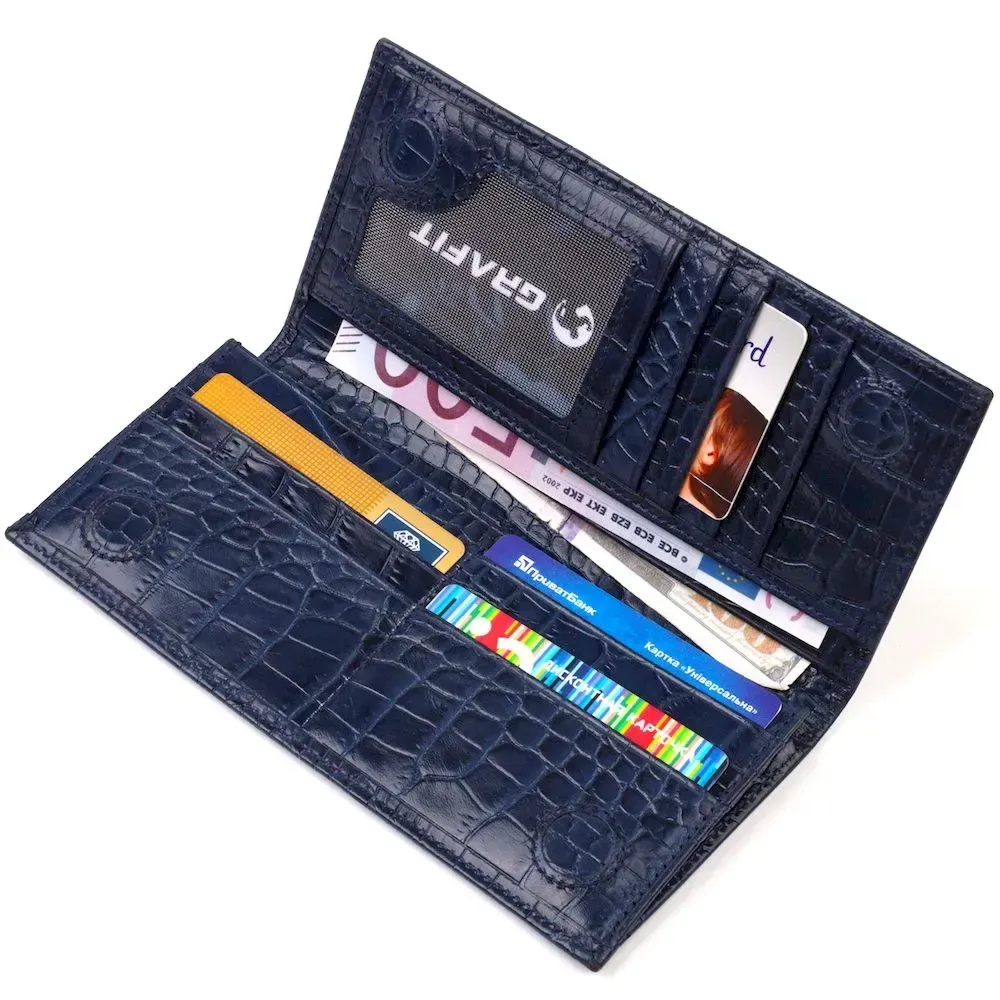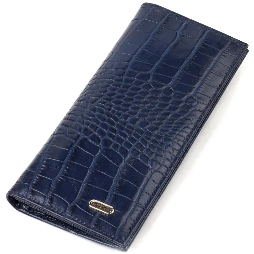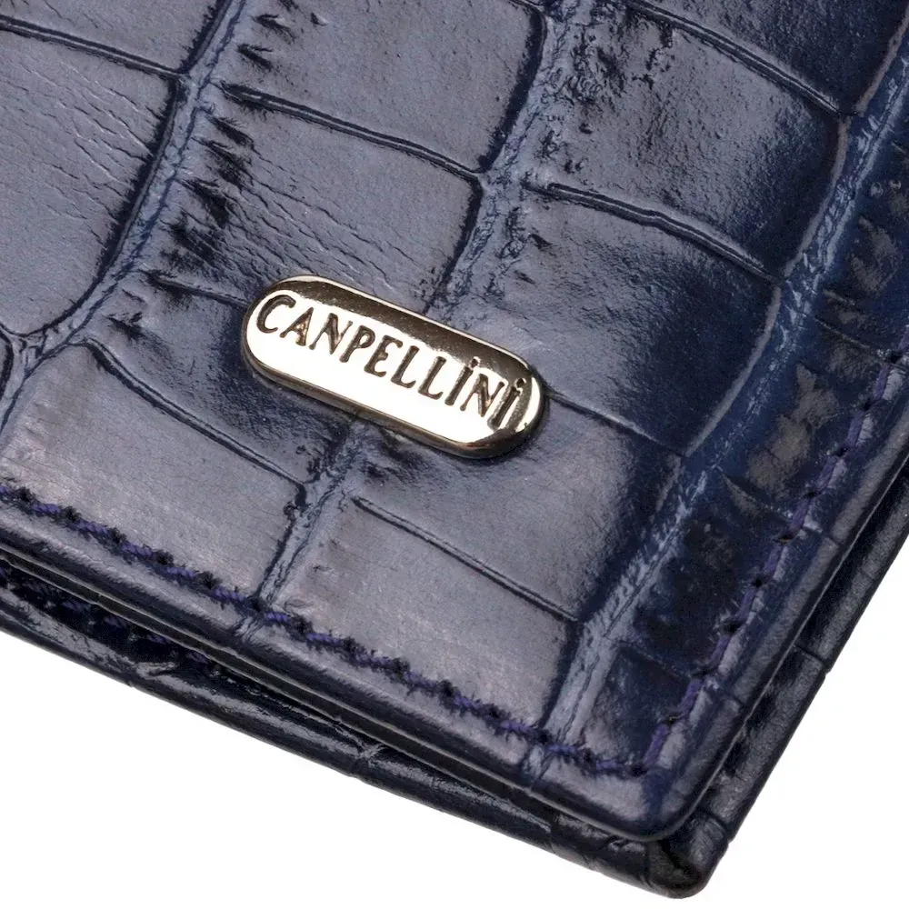 Красивый мужской вертикальный бумажник из натуральной кожи с тиснением под крокодила CANPELLINI 21901 Синий