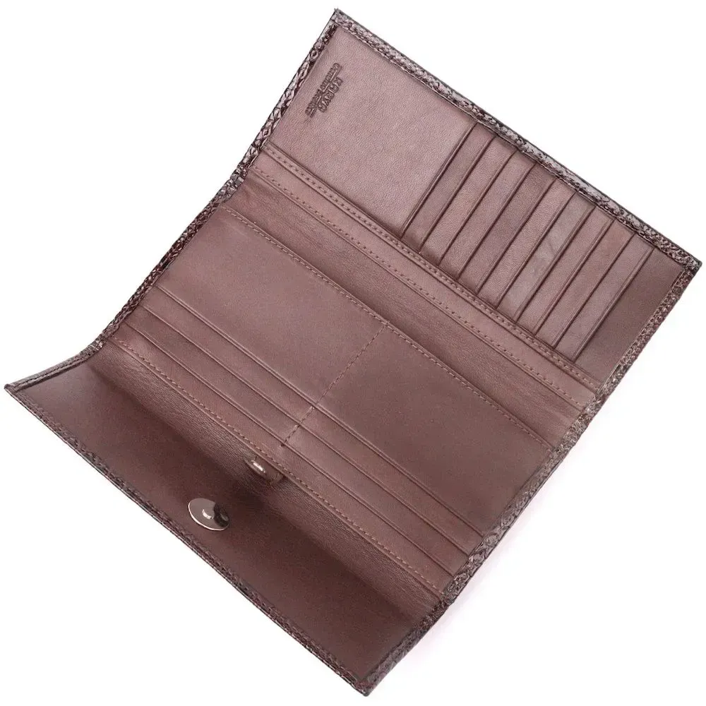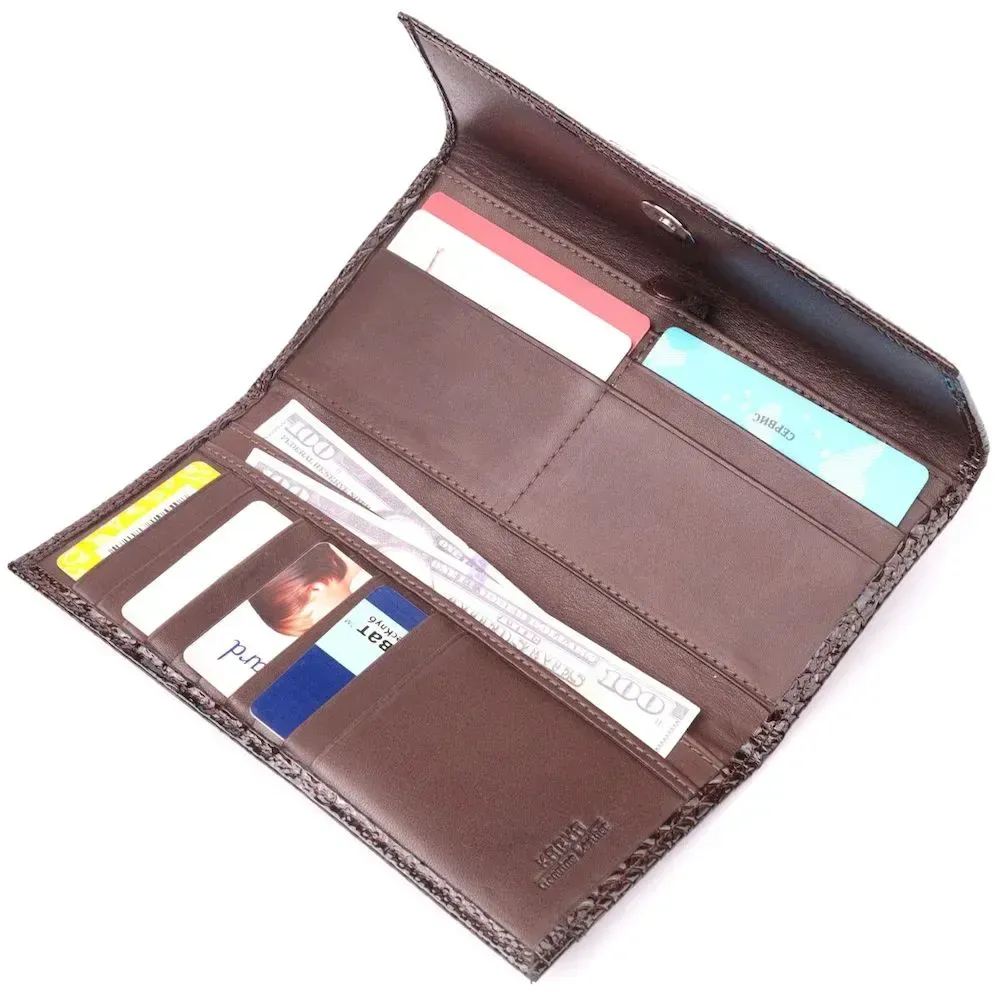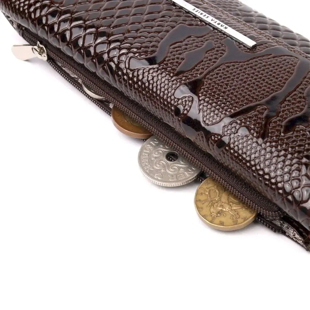 Красивый женский кошелек из натуральной фактурной кожи под змею KARYA 21006 Коричневый